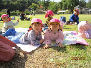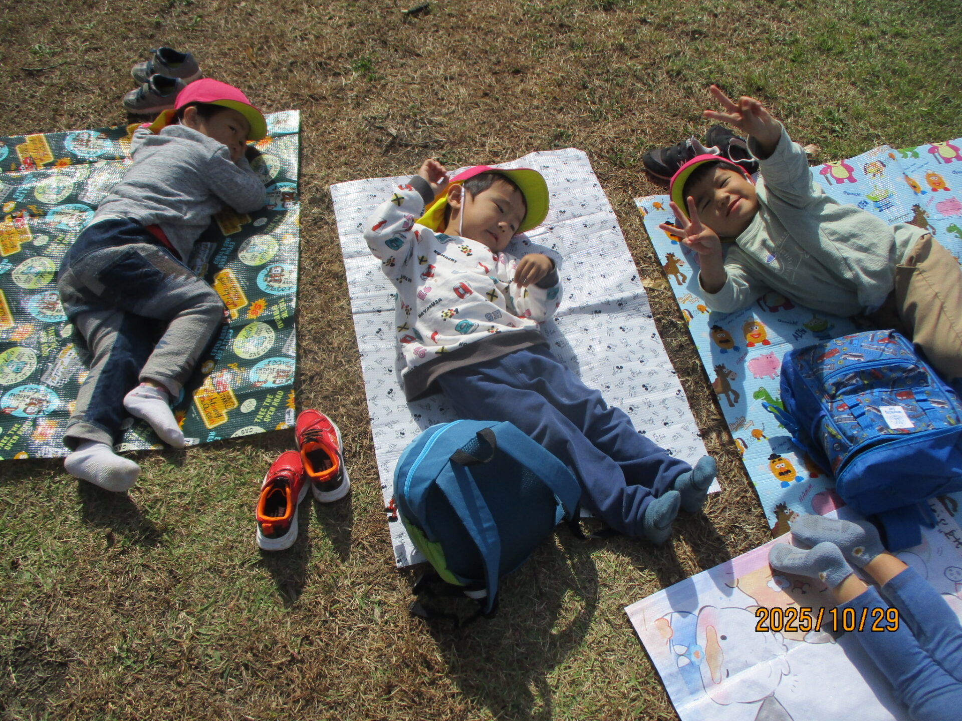 広場で美味しいお弁当を食べた後に、みんなでゴローンと横になってみました♪