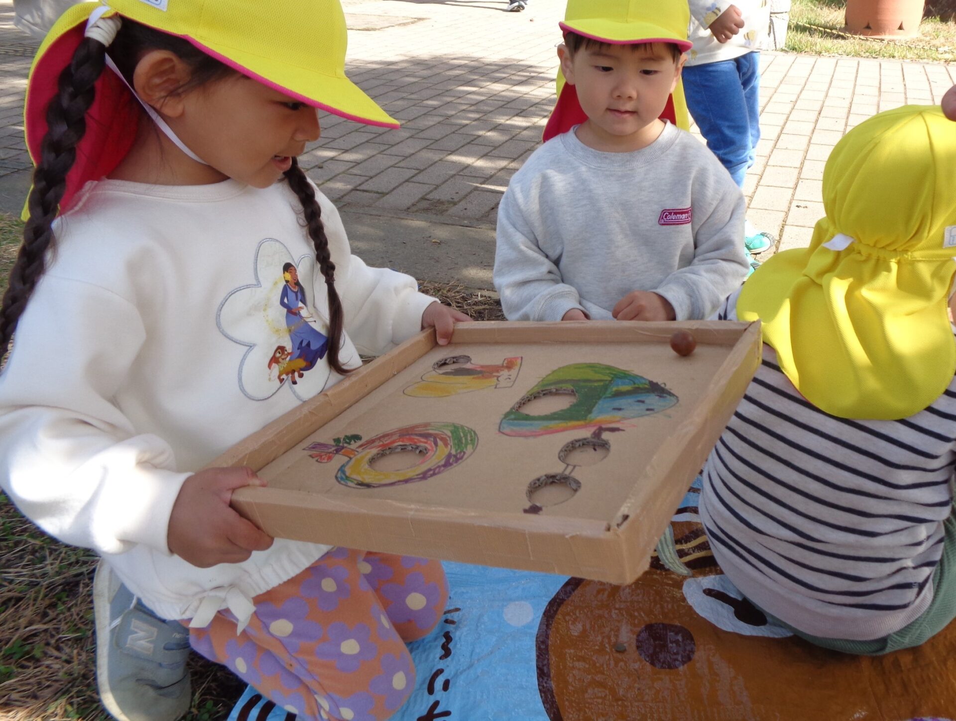 集めたどんぐりを使って、どんぐり落としも楽しみました☺