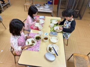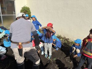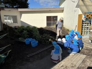 はじめに、保育キーパーさんから掘り方を教えてもらいました。