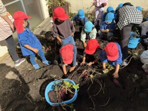 細い苗からたくさんのサツマイモが収穫でき、食物を育てる面白さや収穫の嬉しさを味わうことができました。