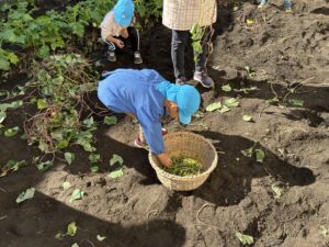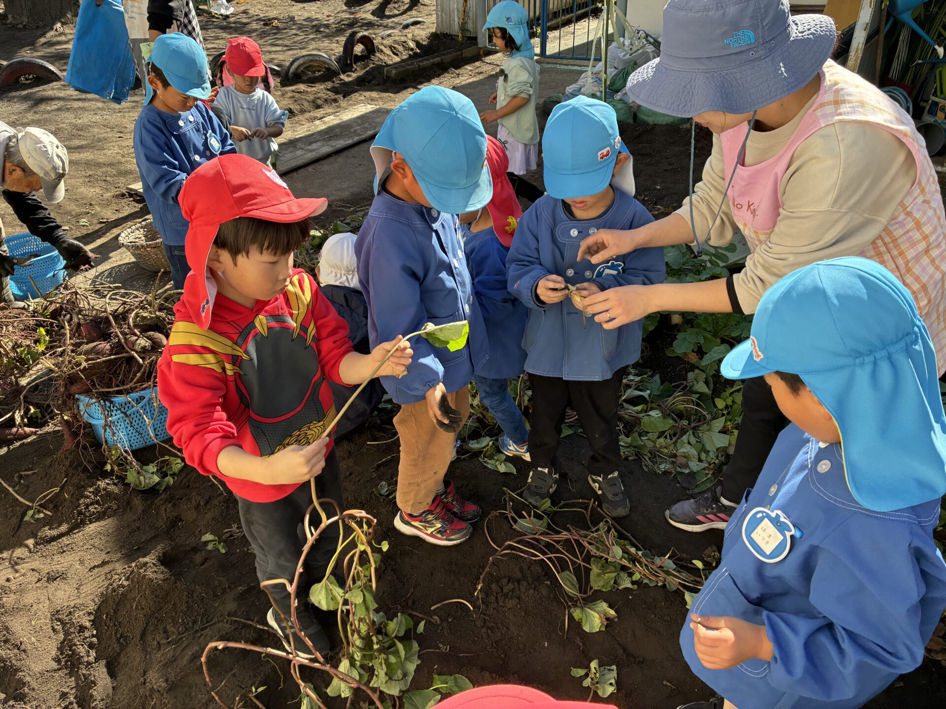 根っこにお芋がついているので、よく掘って探すことがポイントです!