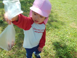 なかなかこども園の近くでは木の実を見つけることができず残念がっていたのですが、