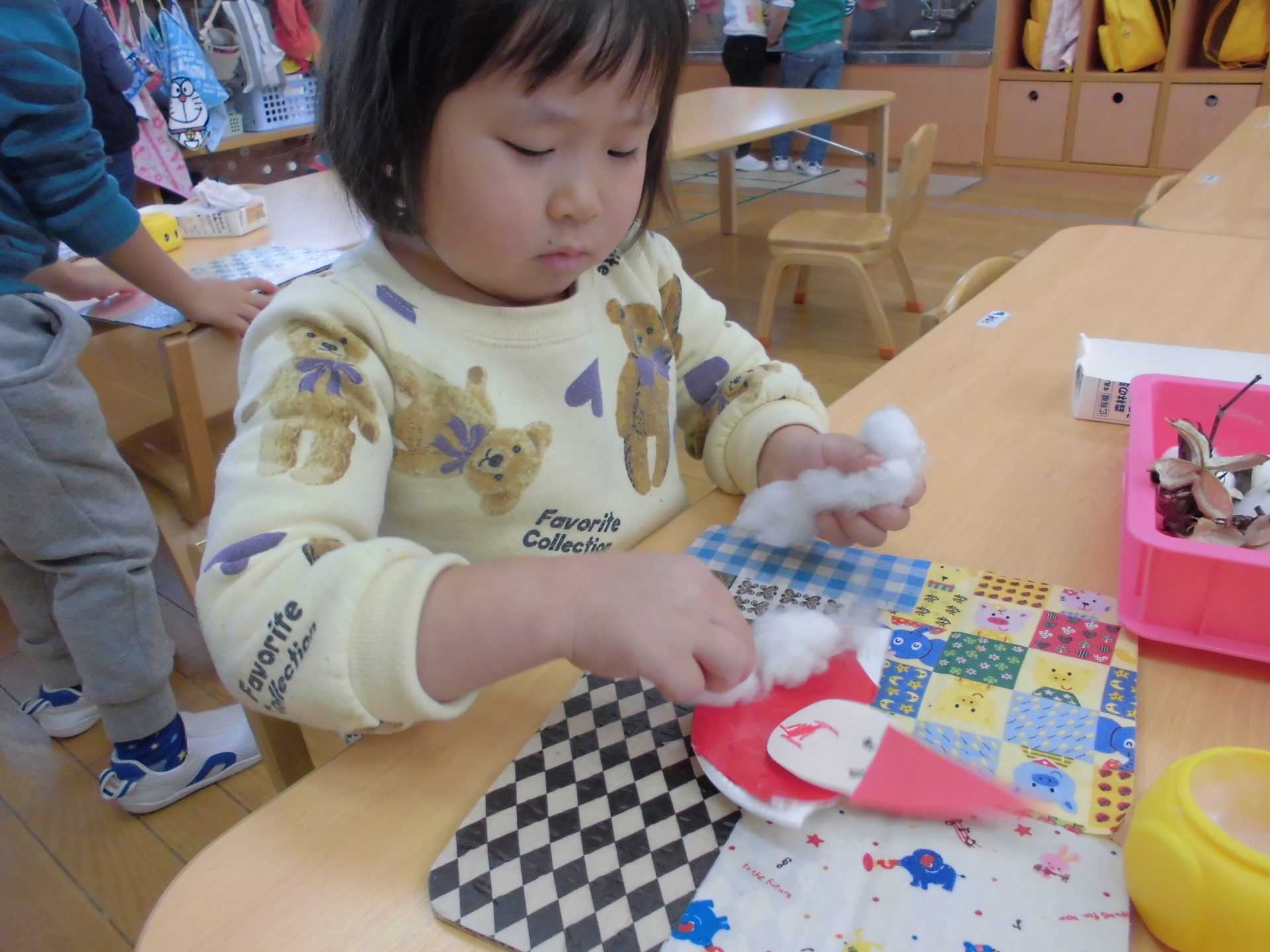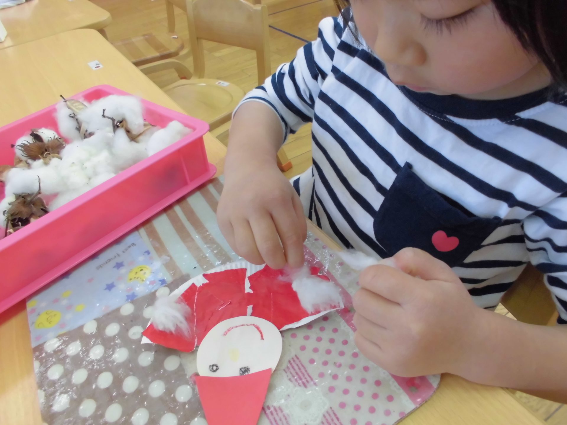 実際に収穫した綿を自分たちで触れたり、ちぎったりして大好きなサンタさんを作れたことは貴重な体験だったと思います。