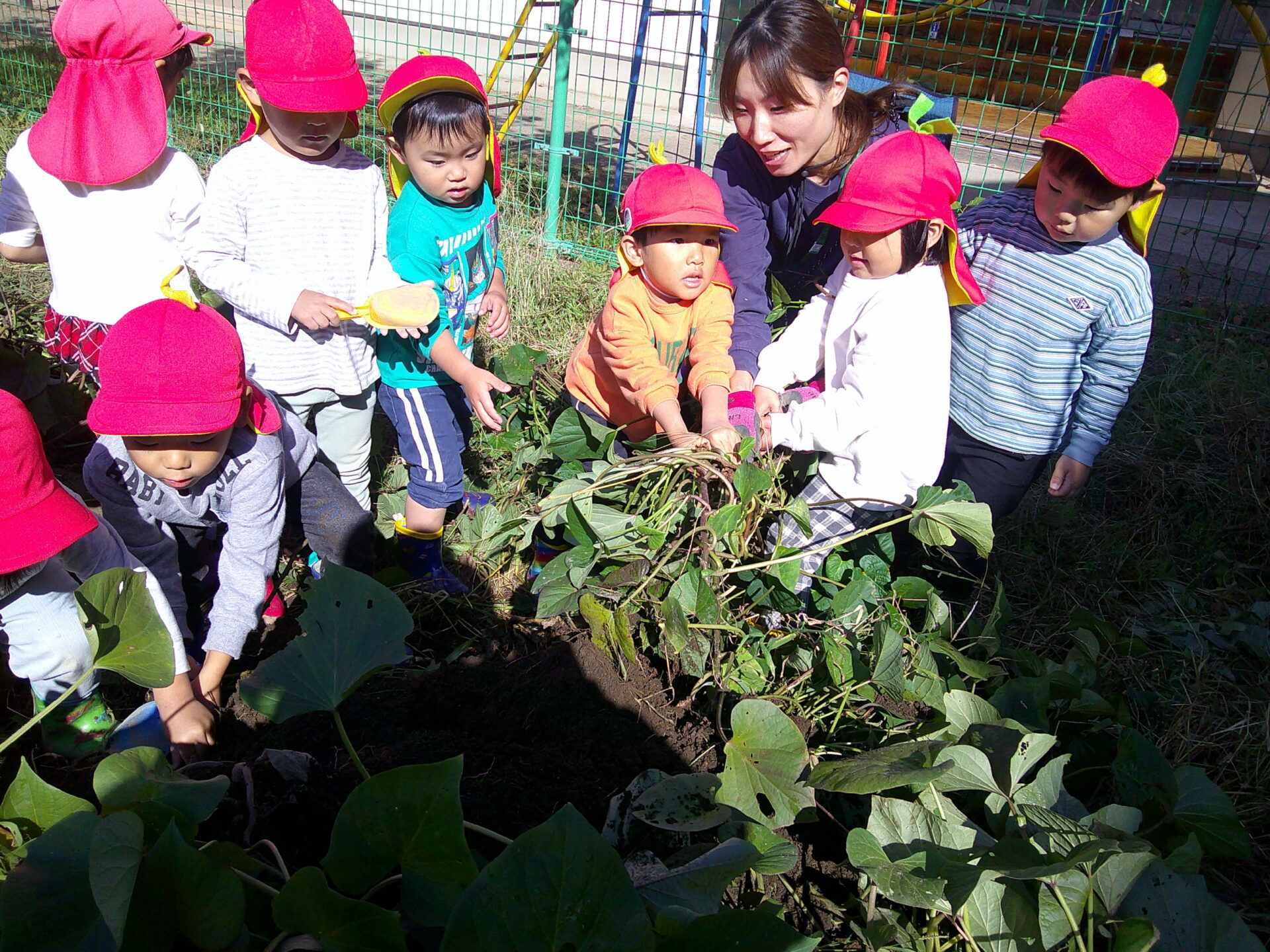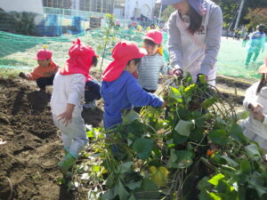 「お芋ついてる~!!!」と土の中から勢いよく出てくるお芋に大喜び。