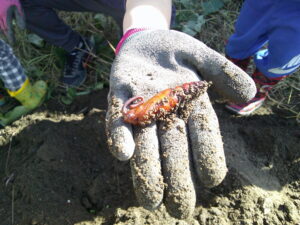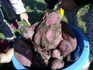 大きく、長く伸びたツルと葉でいっぱいになってきたさつまいも畑で、先日さつまいも堀りをしました。