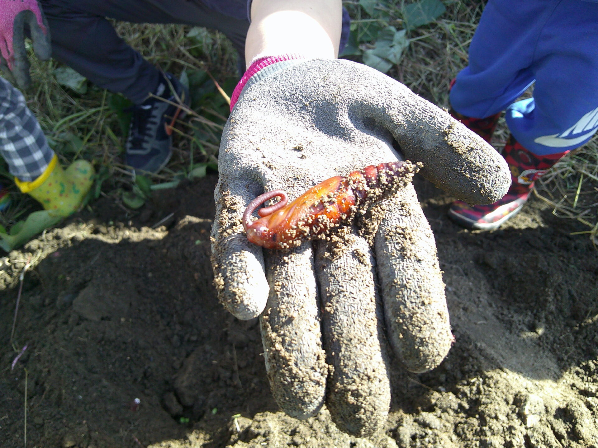 「こっちはお芋ないよ!」と土の中を掘って探してみると、