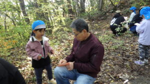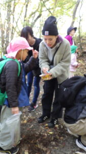 はじめに森のビンゴゲームをして、カードにある自然物を探しました。