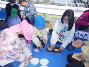 「どこにあるの?」「こっちにもあるよ。」足元を一生懸命探します。