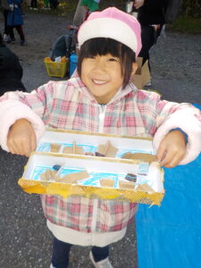 日頃自分達が遊んでいる場をおうちの方に教えられることが、こども達にとっては自慢気でうれしい様子が伝わってきた。また、おうちの方が一緒に制作してくださり、自分達だけでは難しいところもでき、満足できたように思う。