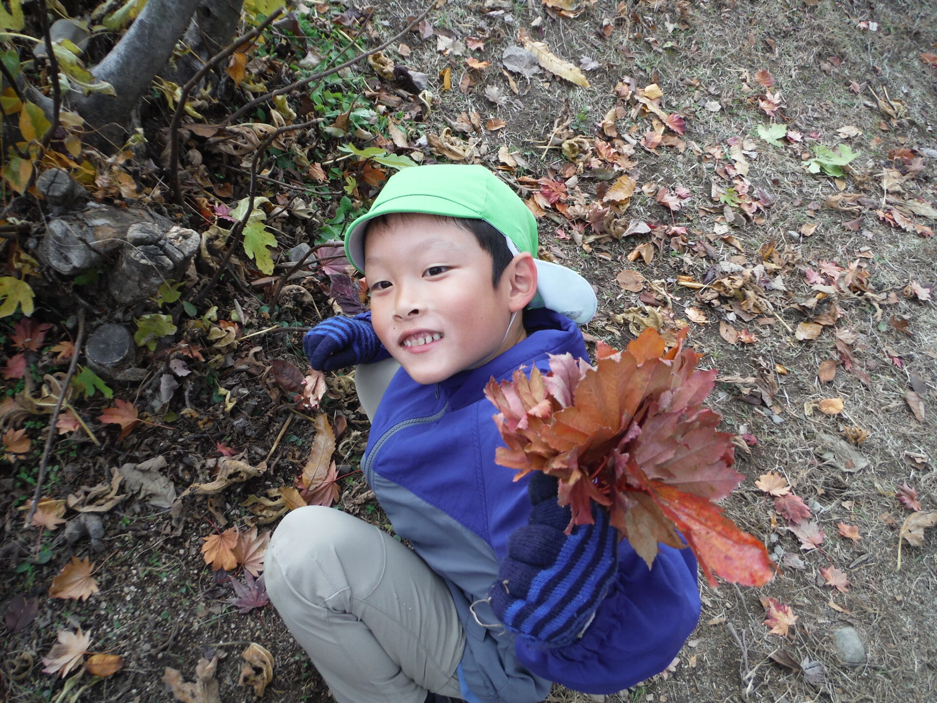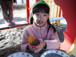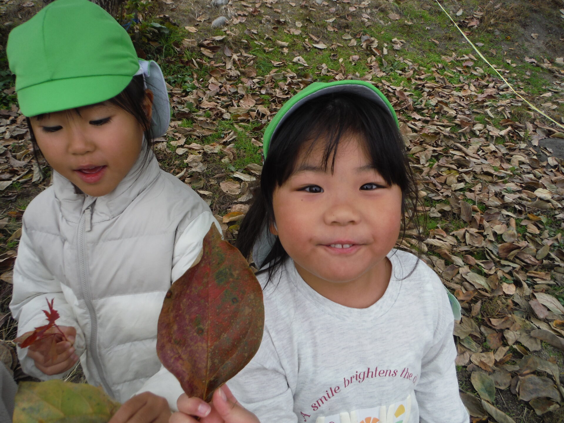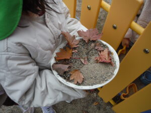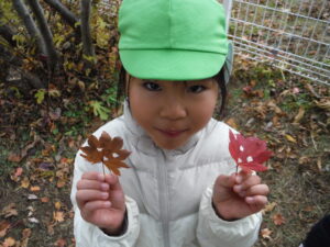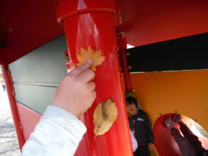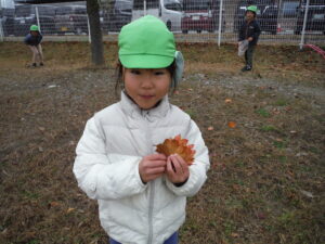 朝晩が寒くなってきて園庭に葉っぱがたくさん落ちていました。