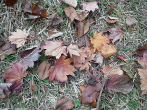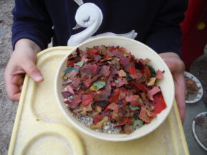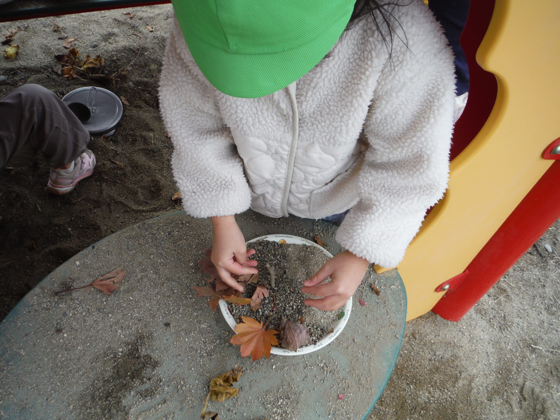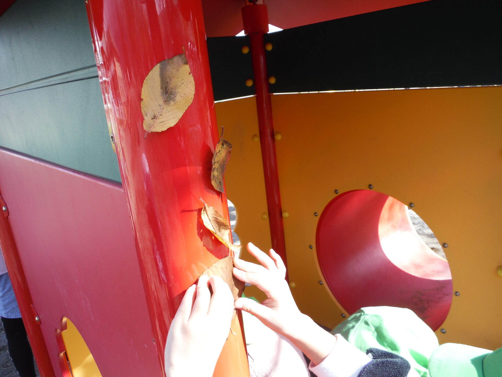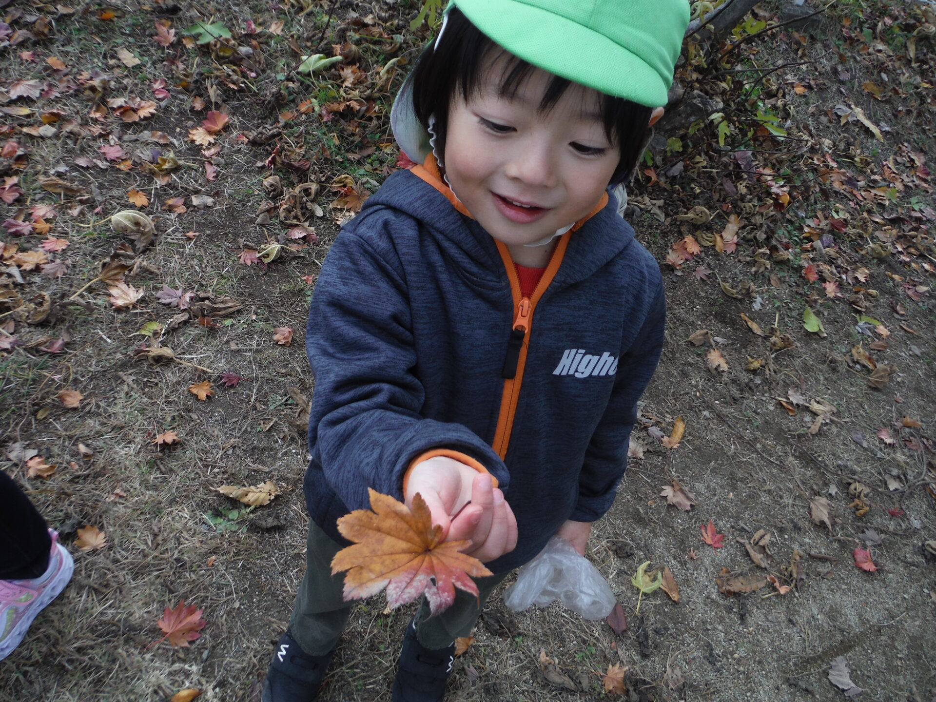 朝晩が寒くなってきて園庭に葉っぱがたくさん落ちていました。