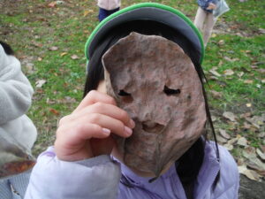 葉っぱに穴を開けて…「おばけだぞ〜。」