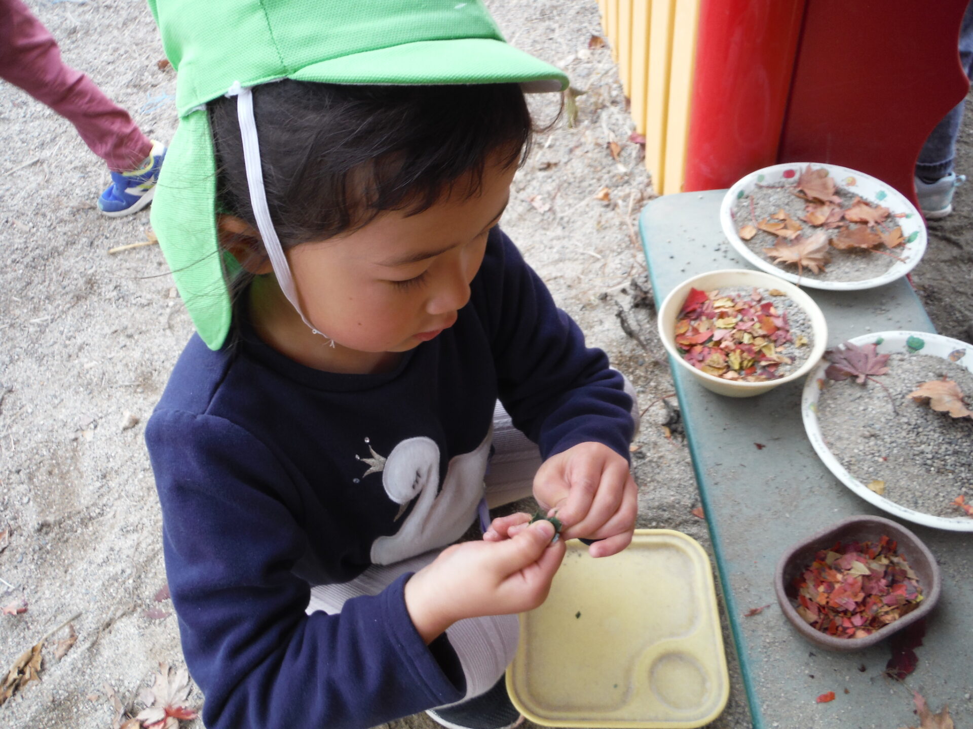 その葉っぱを集めたり遊びで使ったりし始めました。