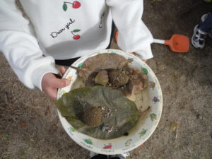 雨上がりの園庭にはいろいろな発見があります。