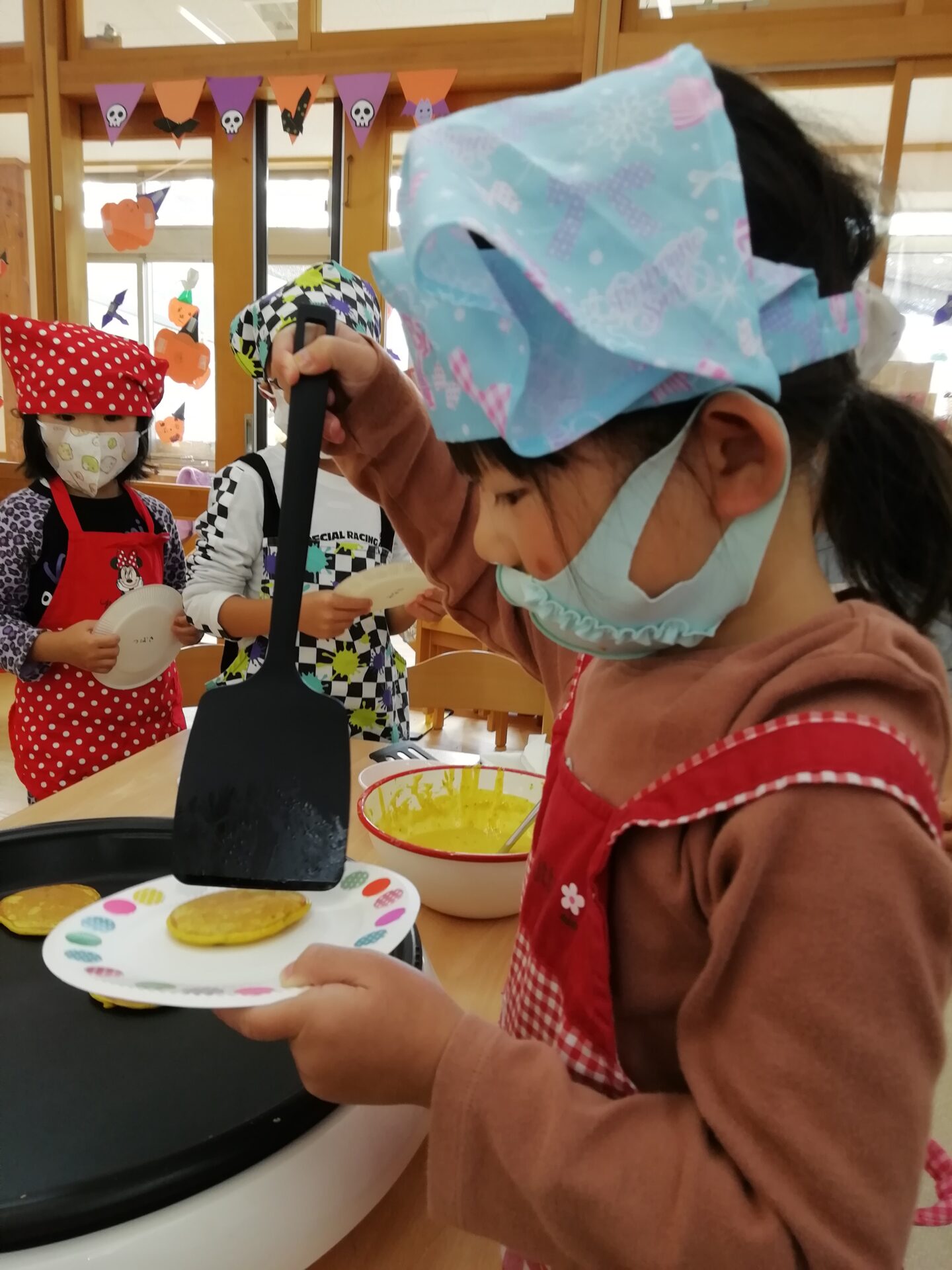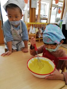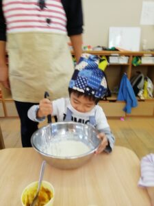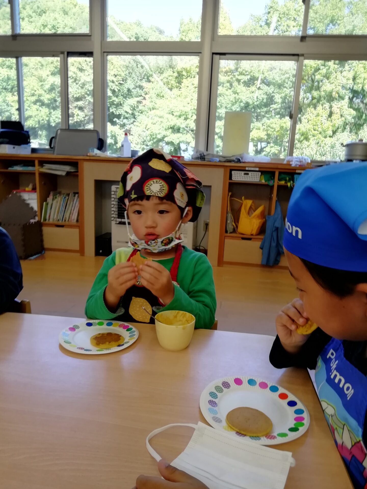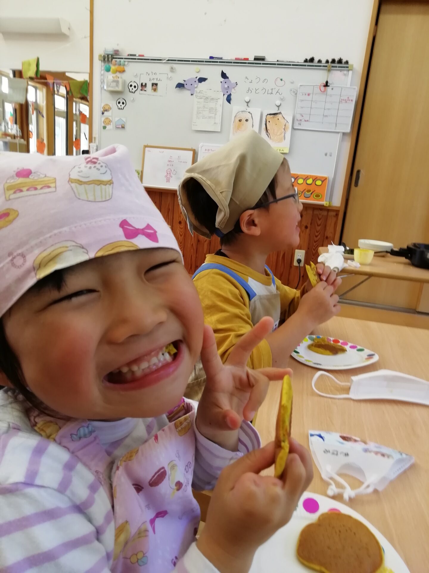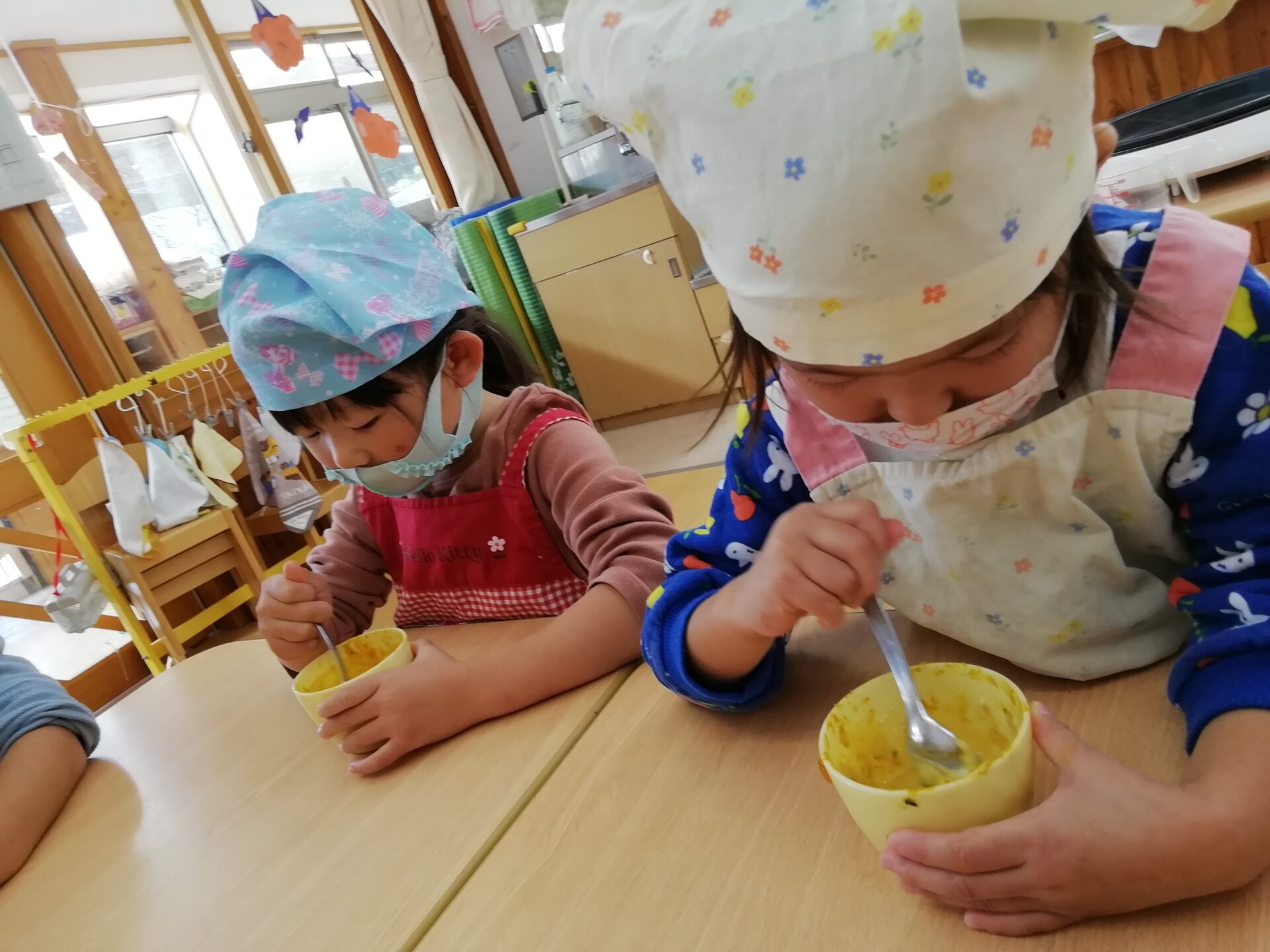 園での調理体験後、お家でも作ってみたという声も聞かれました。今回の調理体験が、『食』に対し、さらに興味をもてると良いなと思います。
