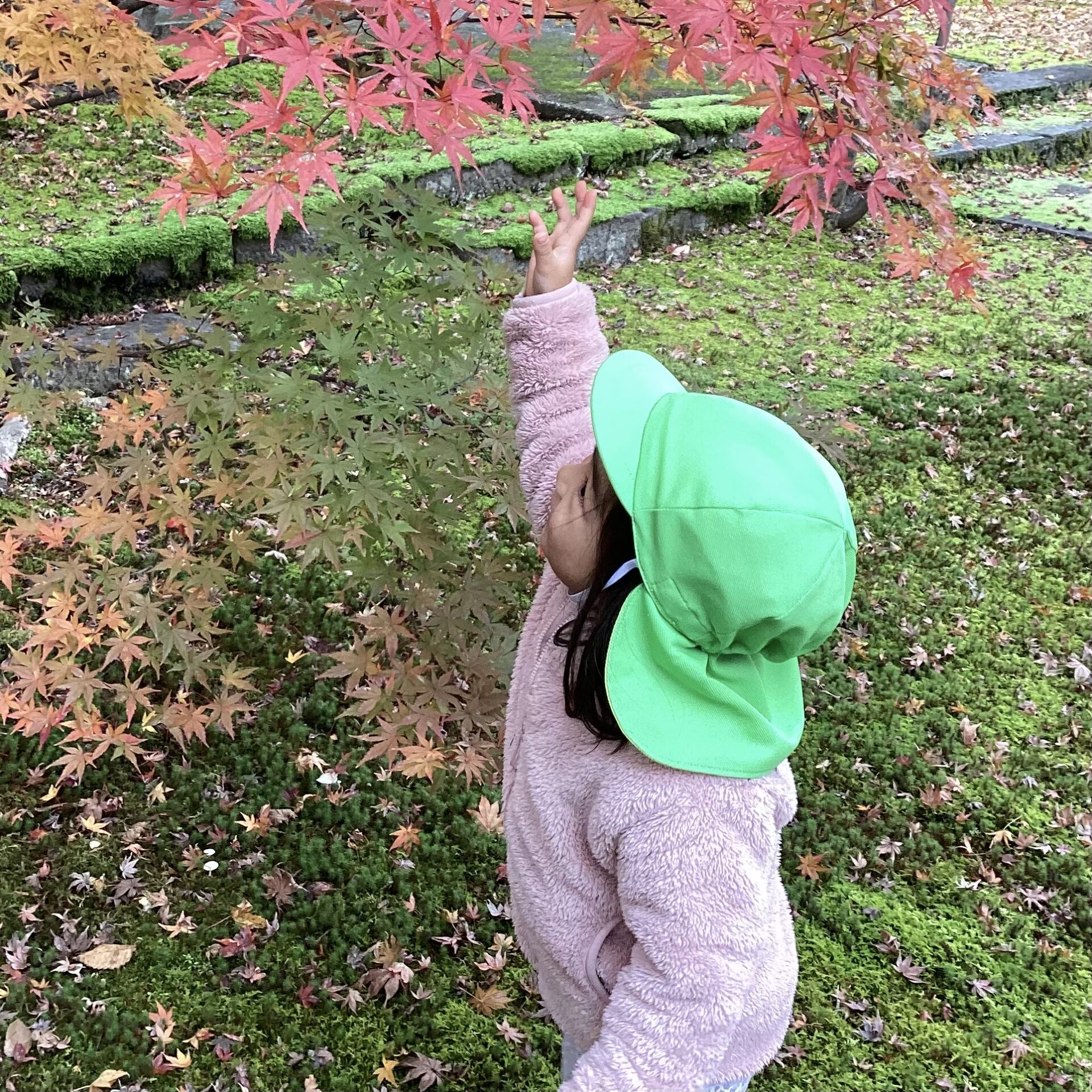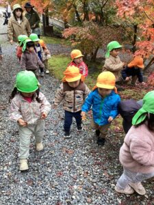 周辺にお寺が沢山あり、紅葉が見頃になってきたので未満児クラスで秋探しに出掛けてきました。
