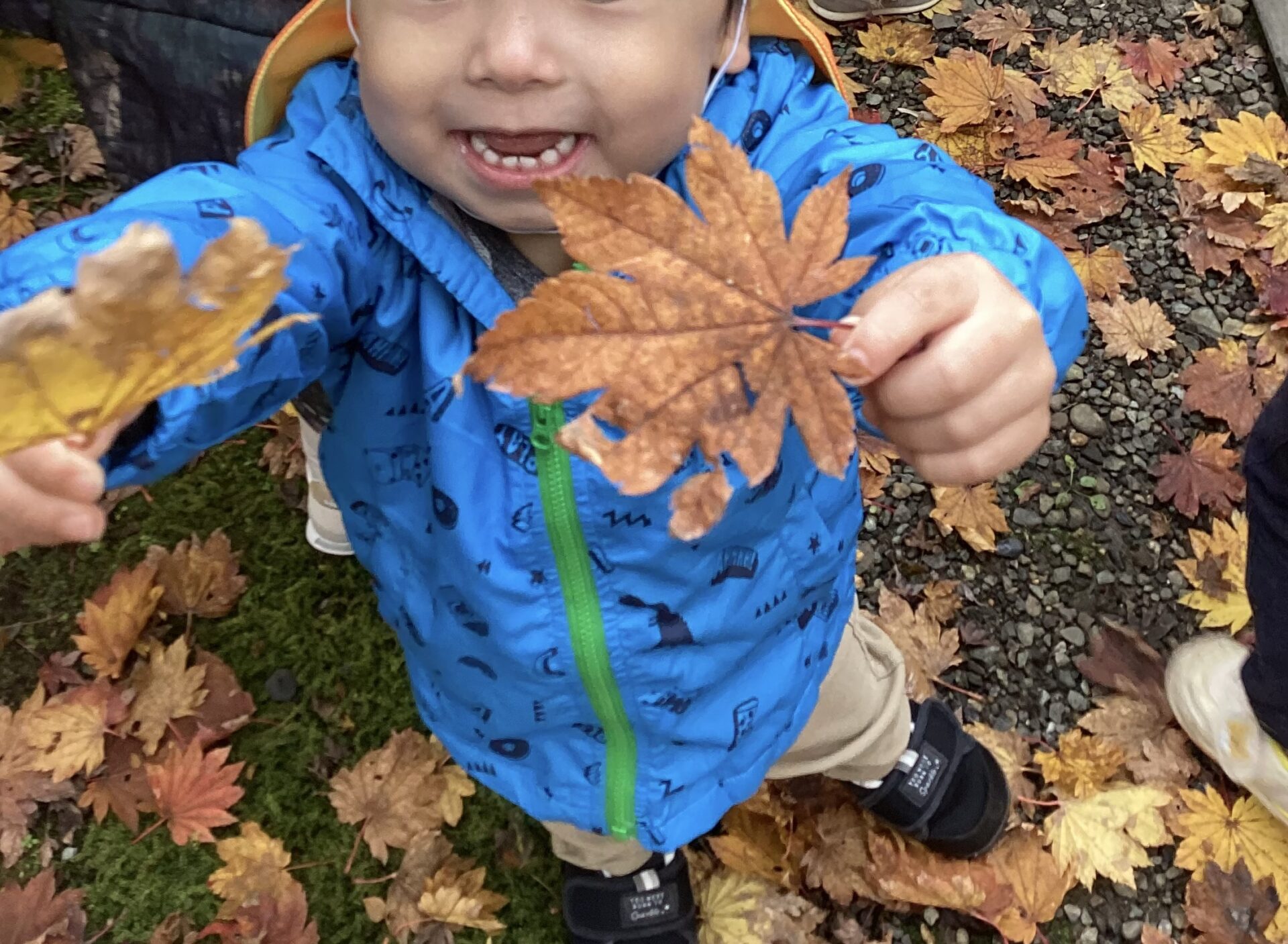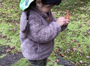 葉っぱの形や色の変化に気づき、『もっとみつけたい!』と興味津々な姿が見られました。これからも子ども達の興味に寄り添い、自然を通していろいろな経験をしていきたいと思いました。