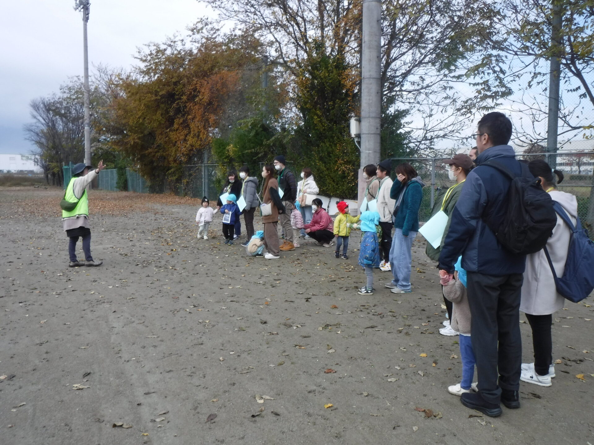 参観日、お家の人と一緒に市営北穂高運動場にお散歩に行きました。