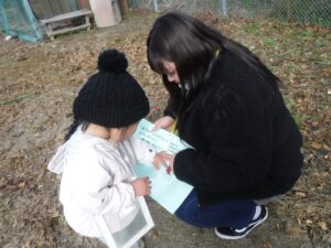 秋を感じる事ができたらと思い、ネイチャーゲームを行いました。