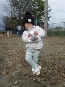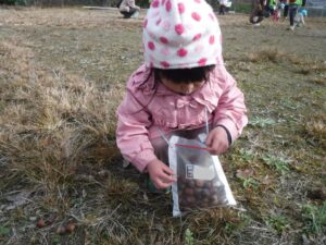 市営北穂高運動場に着いて、秋の宝物を探し始めました。