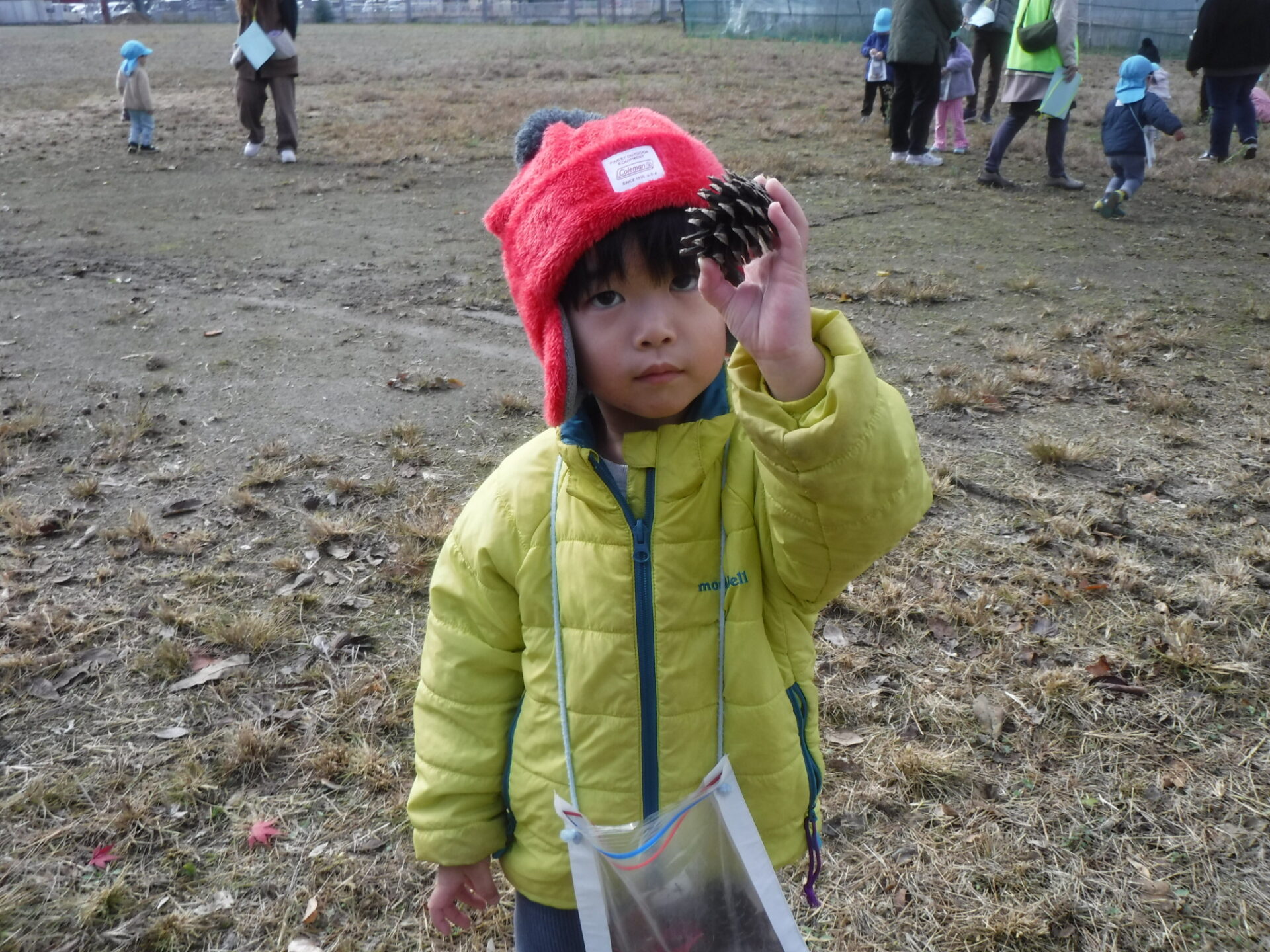 見たり、落ち葉や木の実を拾い、感触や匂いを味わったりと五感を使いながら、