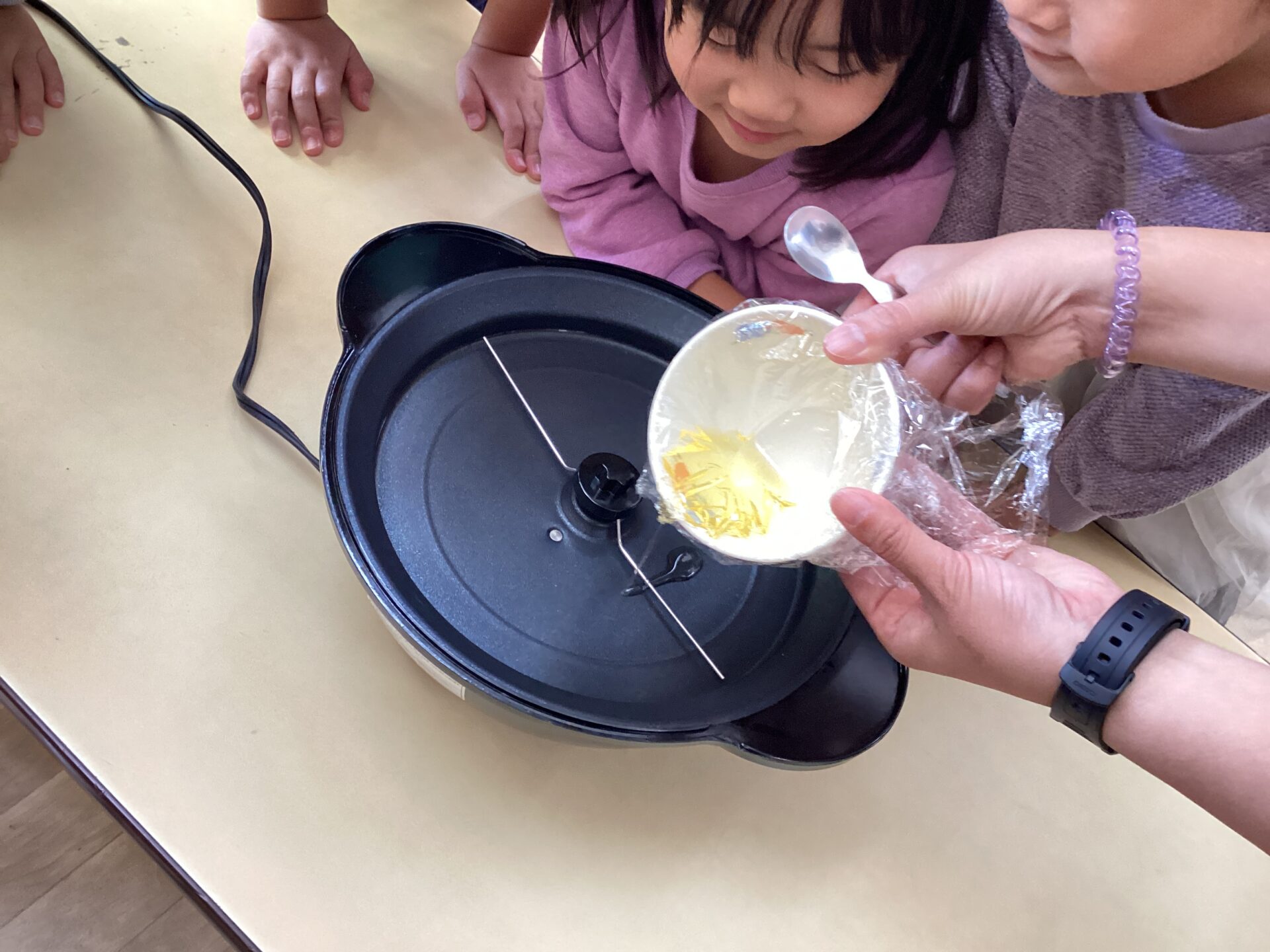 「わぁ・・できた!」「めっちゃいいにおい!」「はやくたべたいよぉ・・」