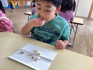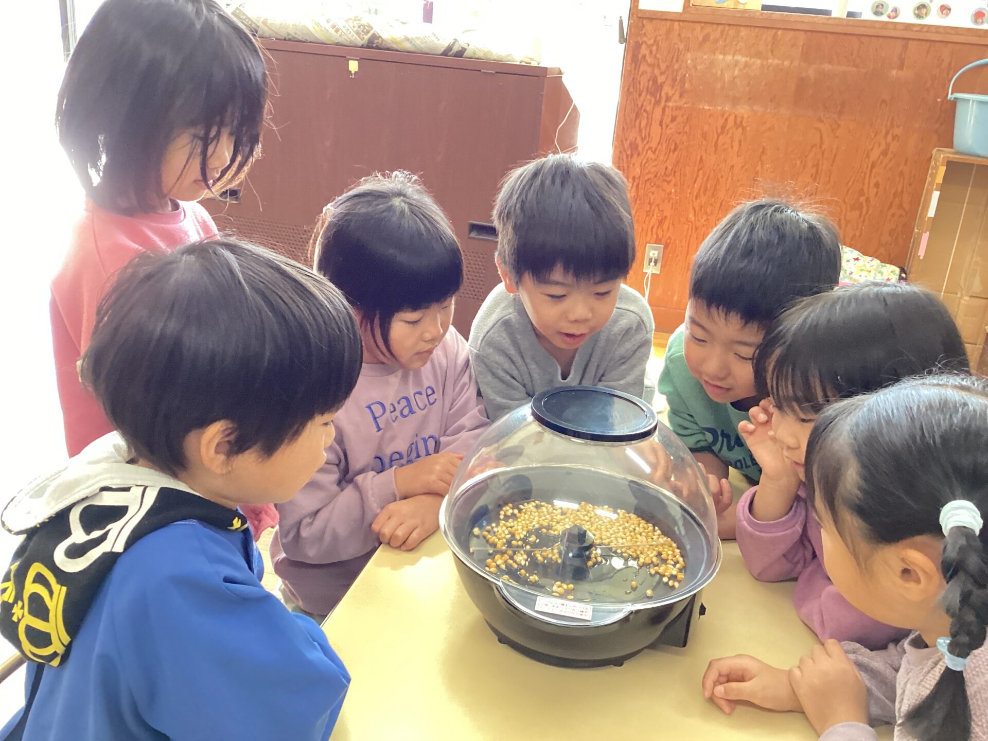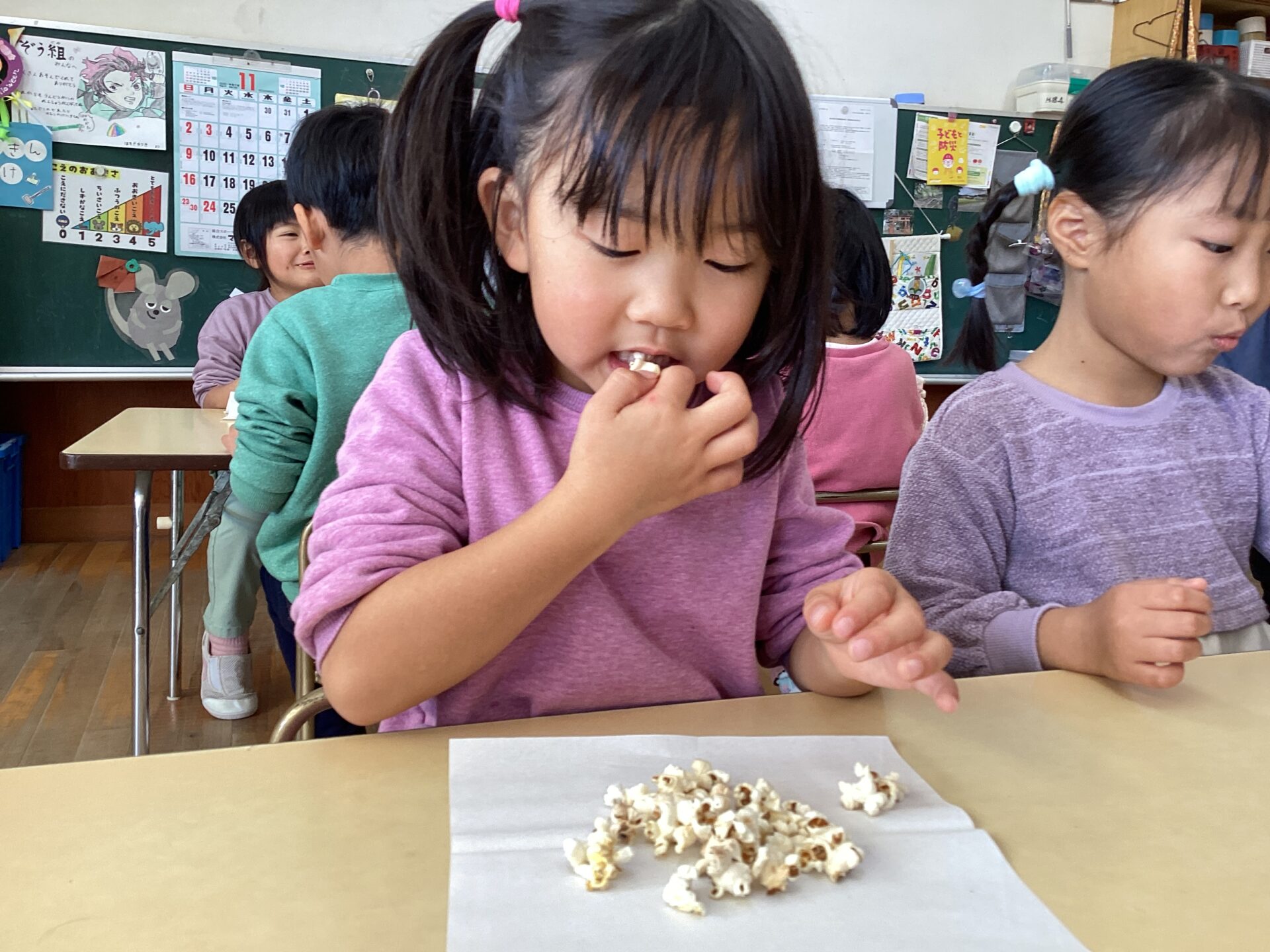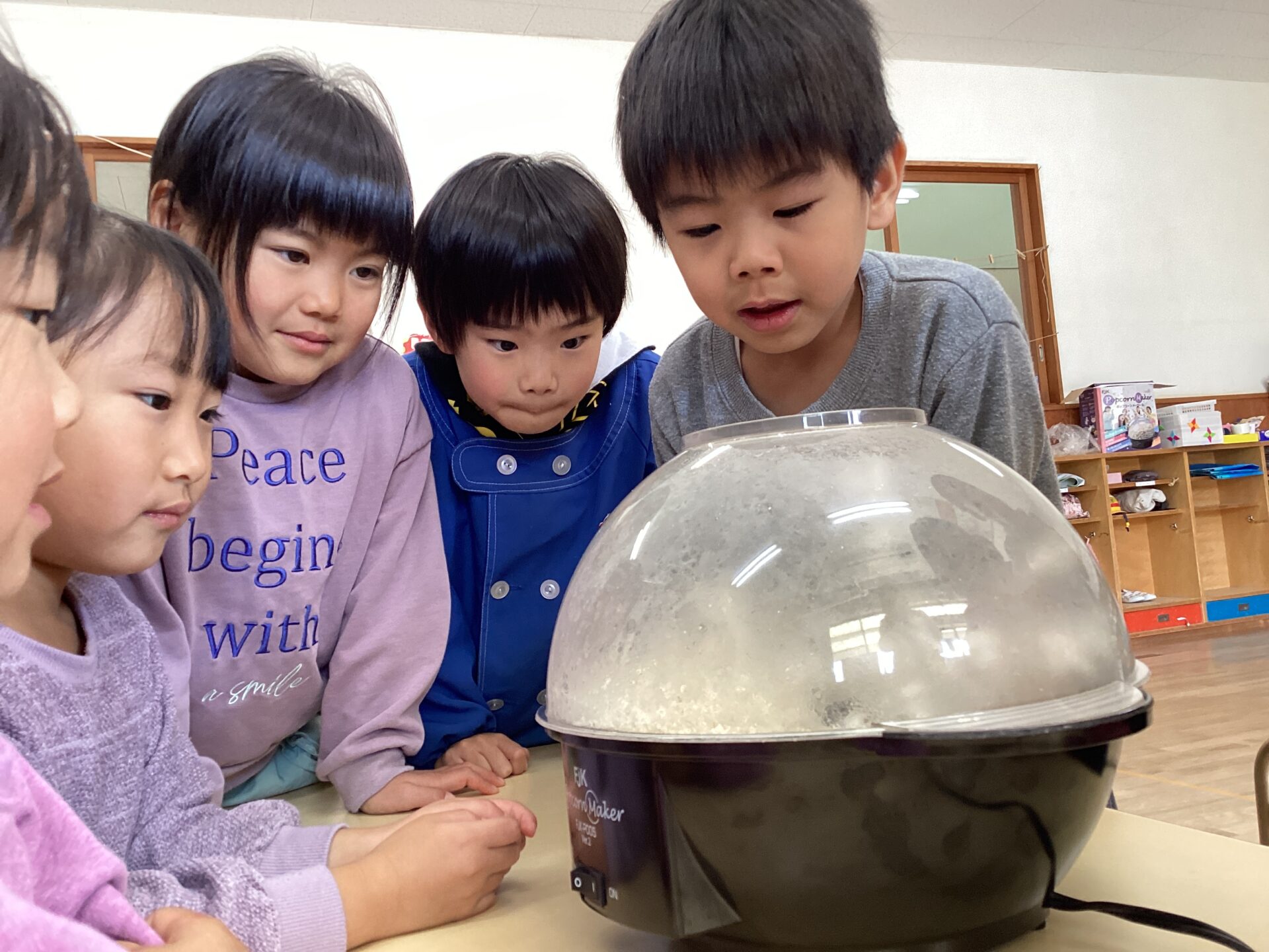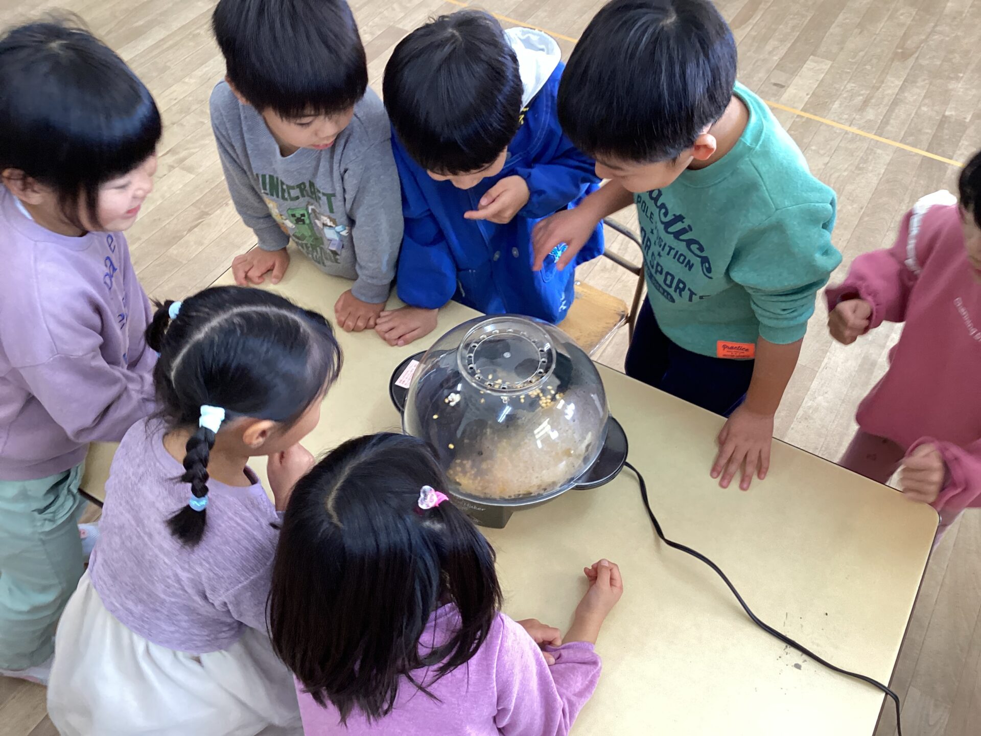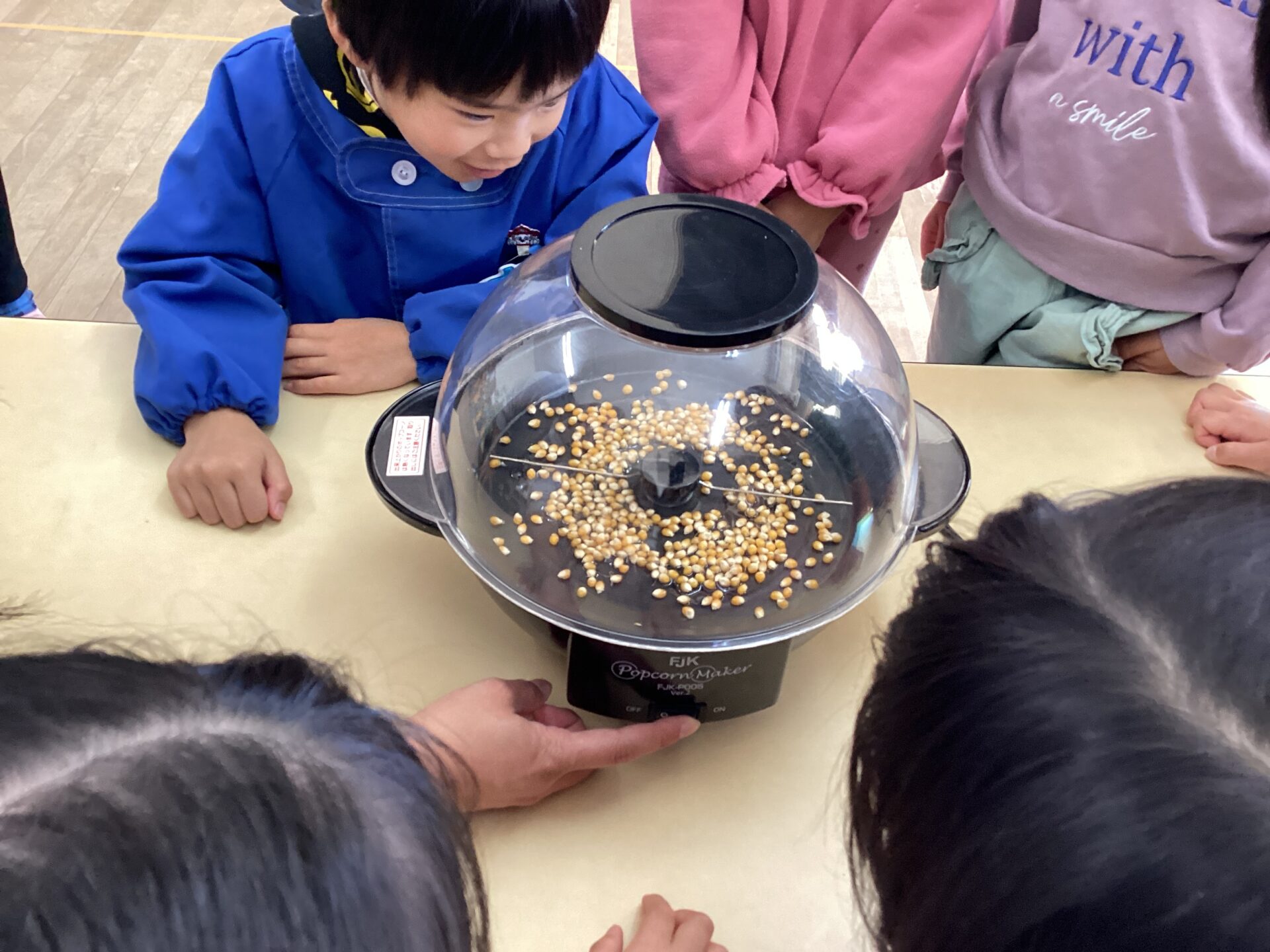 園児:「こんなにすくなくていいの・・?」「ちゃんとポップコーンになるのかな・・」