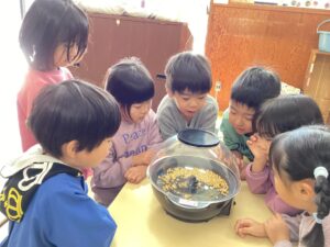 ・友だちと一緒に「まだかな?」「そろそろかな?」と喜びを分かち合う姿から、みんなで一緒に作るからこそ生まれる楽しさを大切にしてほしい。