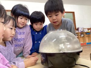 これからどのようになっていくのか興味津々でのぞきこんでいます。