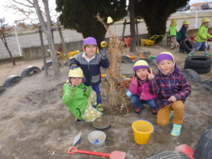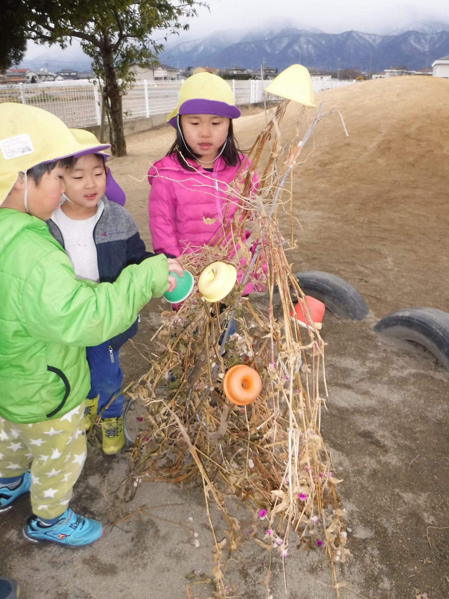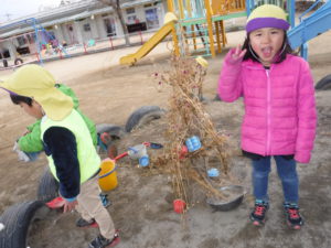 「じゃあ、ここ(砂場)にクリスマスツリーを作ろうよ!」