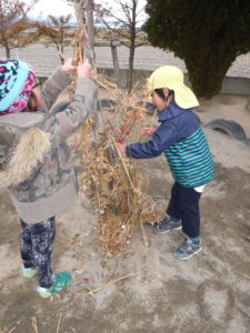 皆「うん!!」「いいね~~」と小枝や例の枯れ草などを集めてきました。