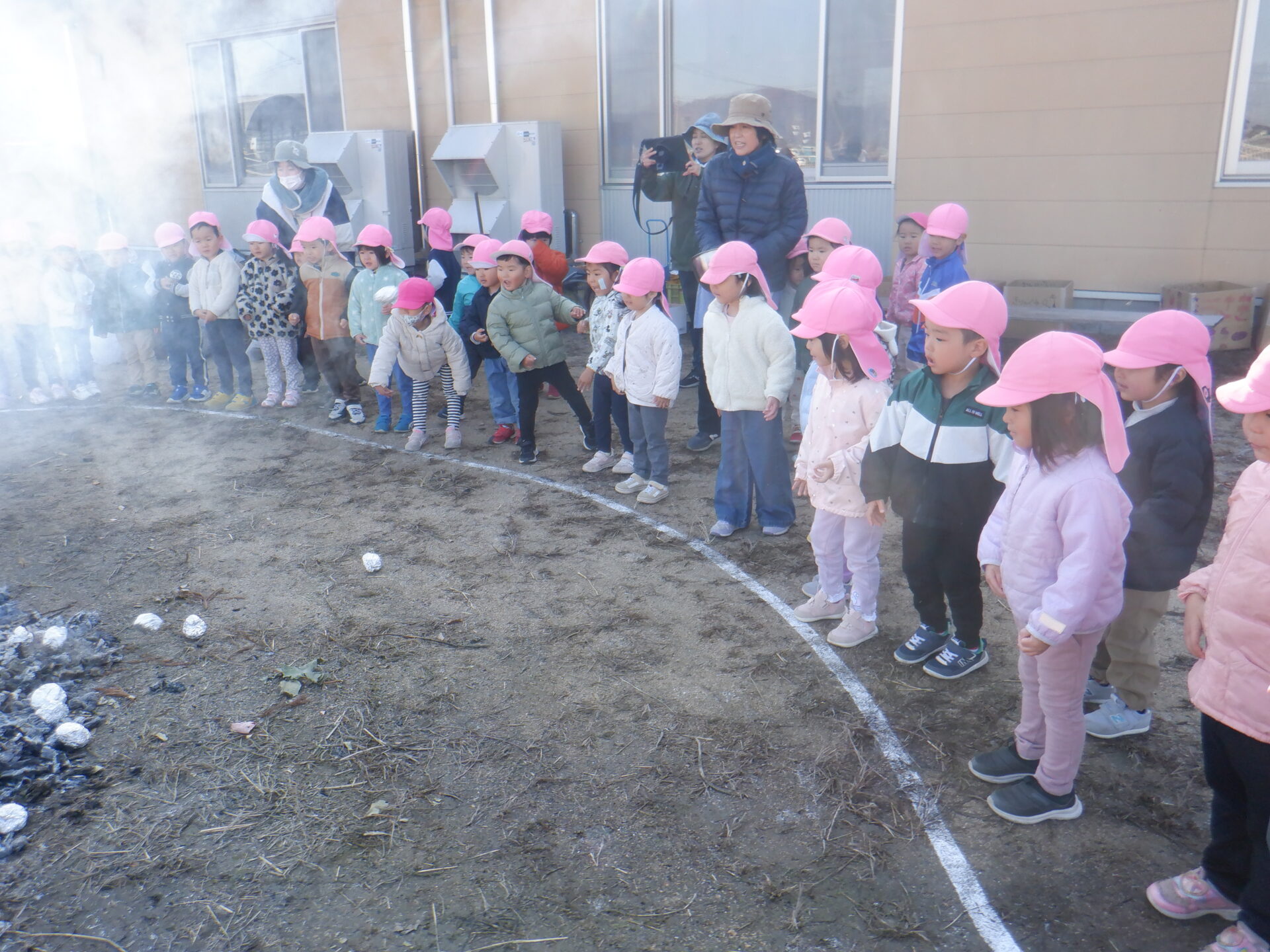 「おいしくなりますように!」と願いながらお芋を、おきの中に入れ、出来上がるのを待ち…。