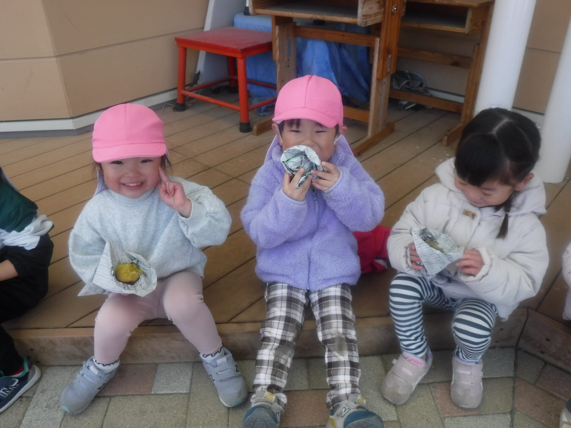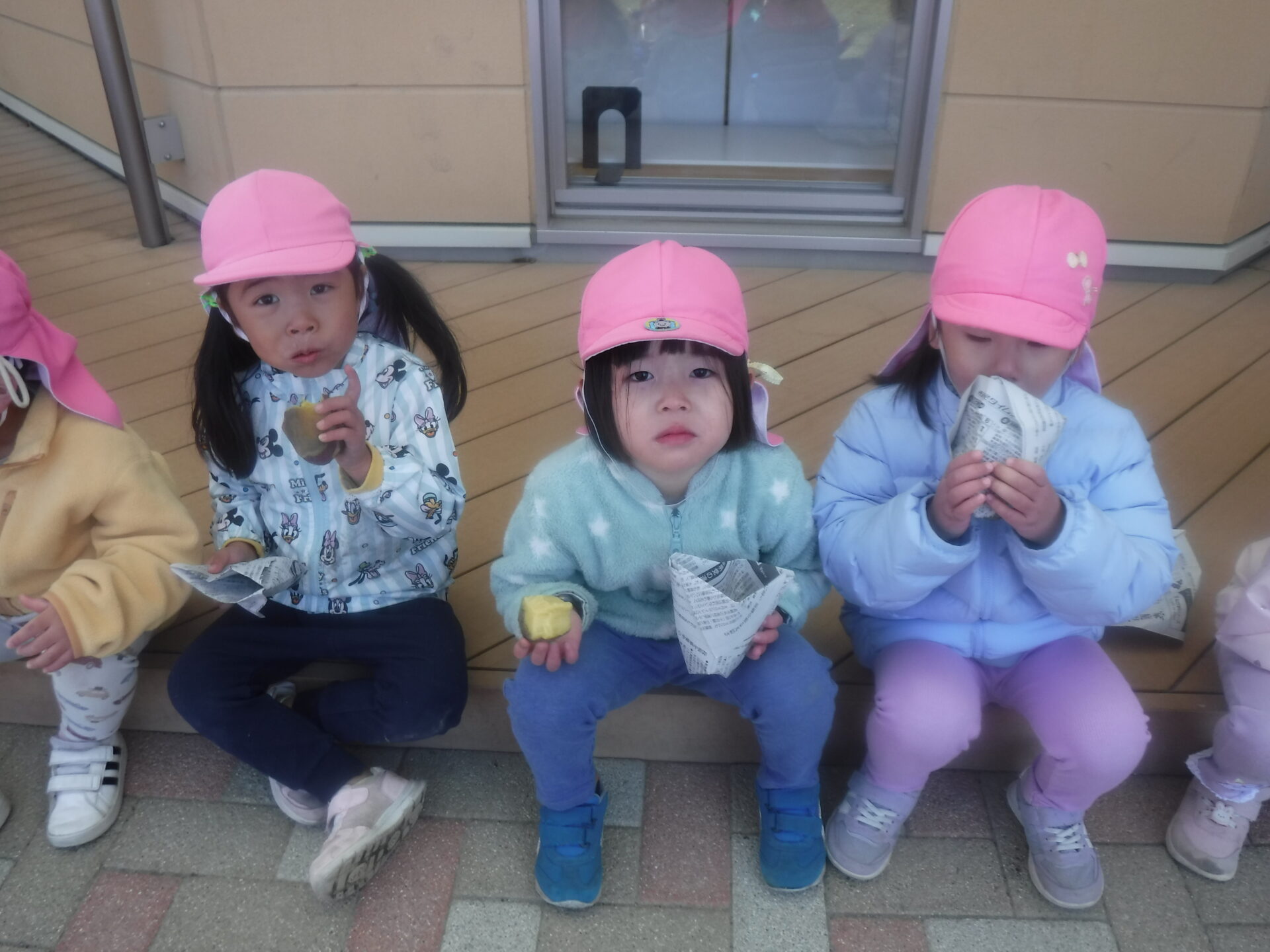 みんなそろって「いただきます!」「おいしいね」「ホクホクだよー」