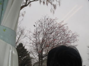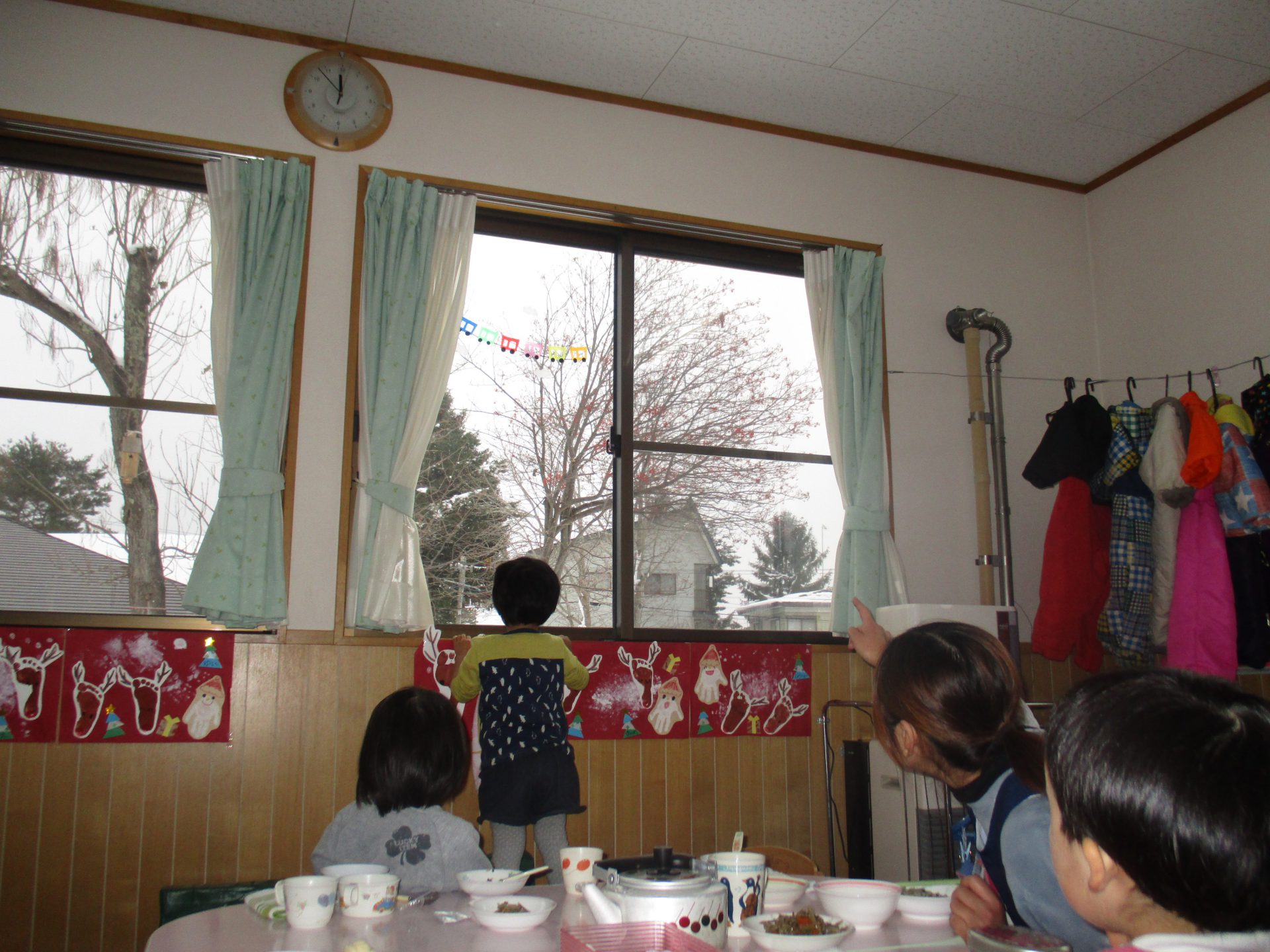 ある日のおやつの後にも、一人の子が「鳥来たよ!」と教えてくれました。