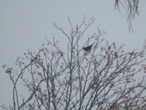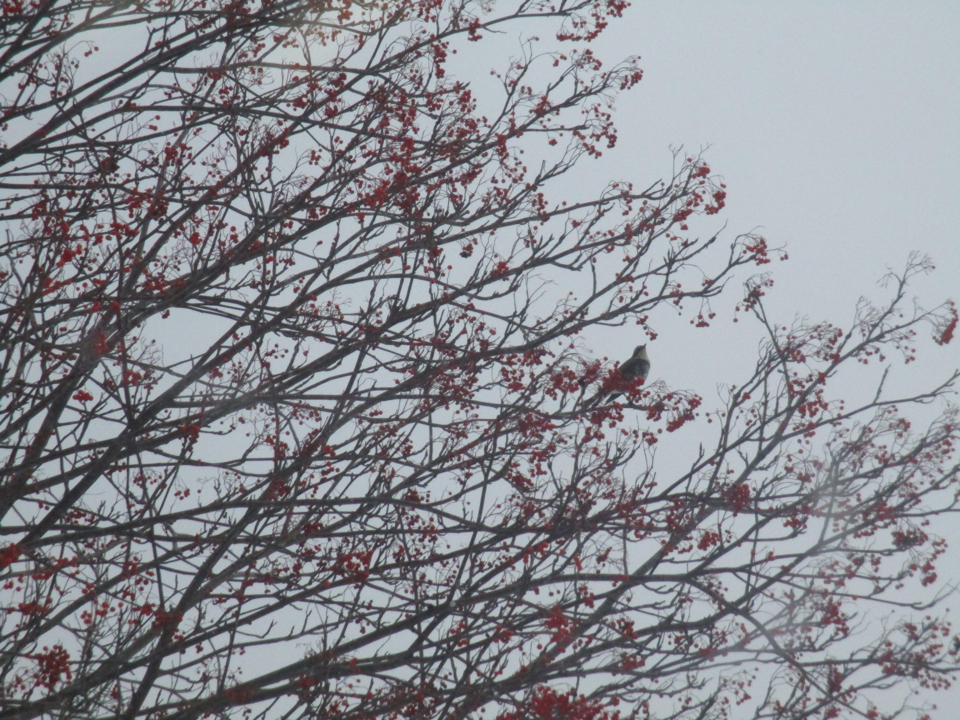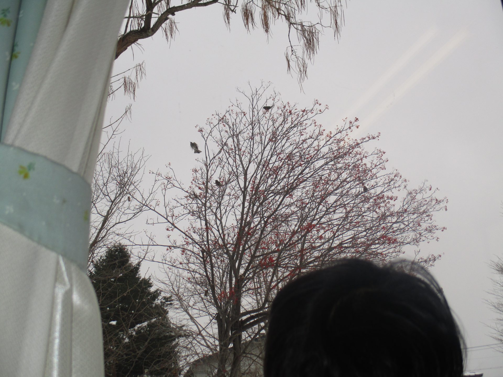 どうやら数匹で赤い実を食べにきたようでした。お部屋からしっかりと赤い実をつつく姿が見えました!