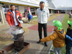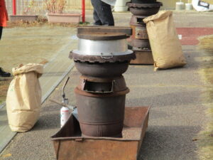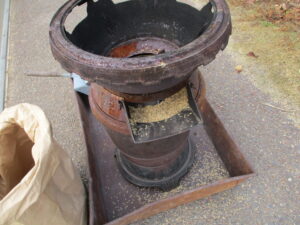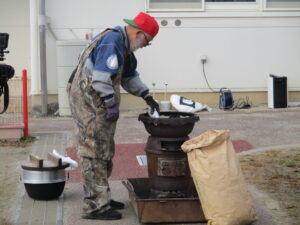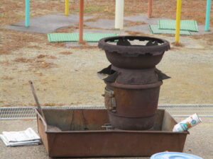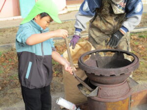 ぬかくどにはもみ殻を使うんだって。ここから入れるのは難しいな