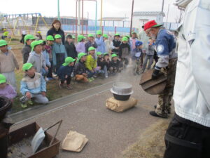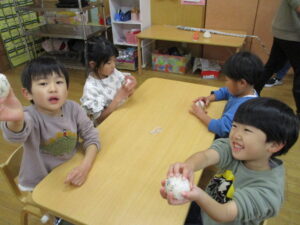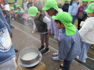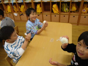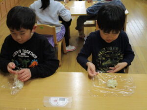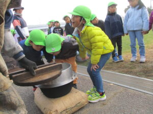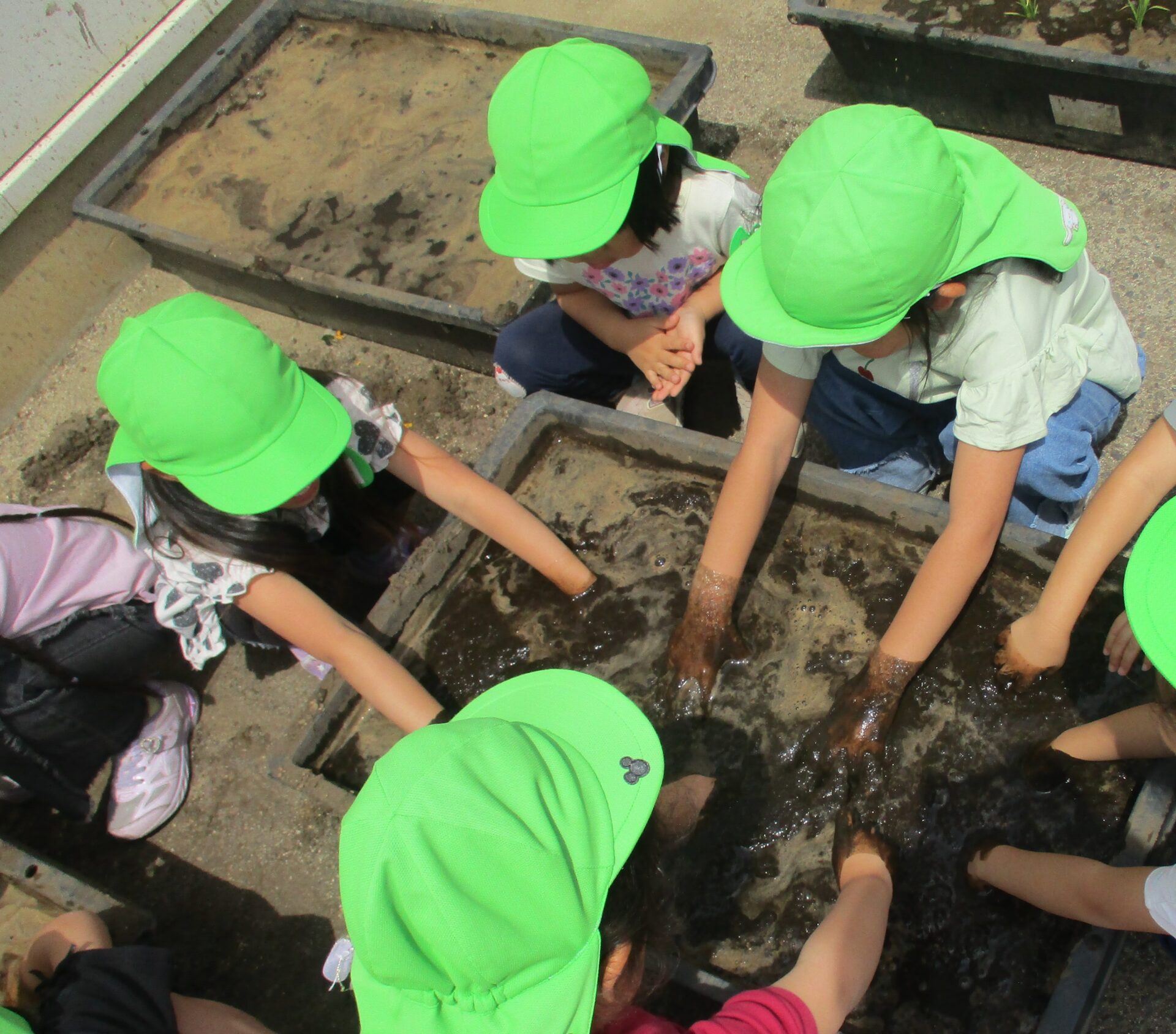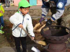土作り、田植え、収穫、脱穀を行ってきた年長さん。
