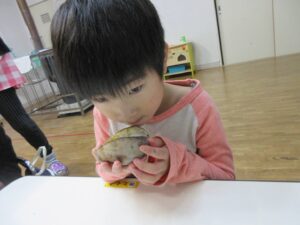 「ん?!なんだか かきみたいなにおいがするぞ。」と興味深々な子どもたち