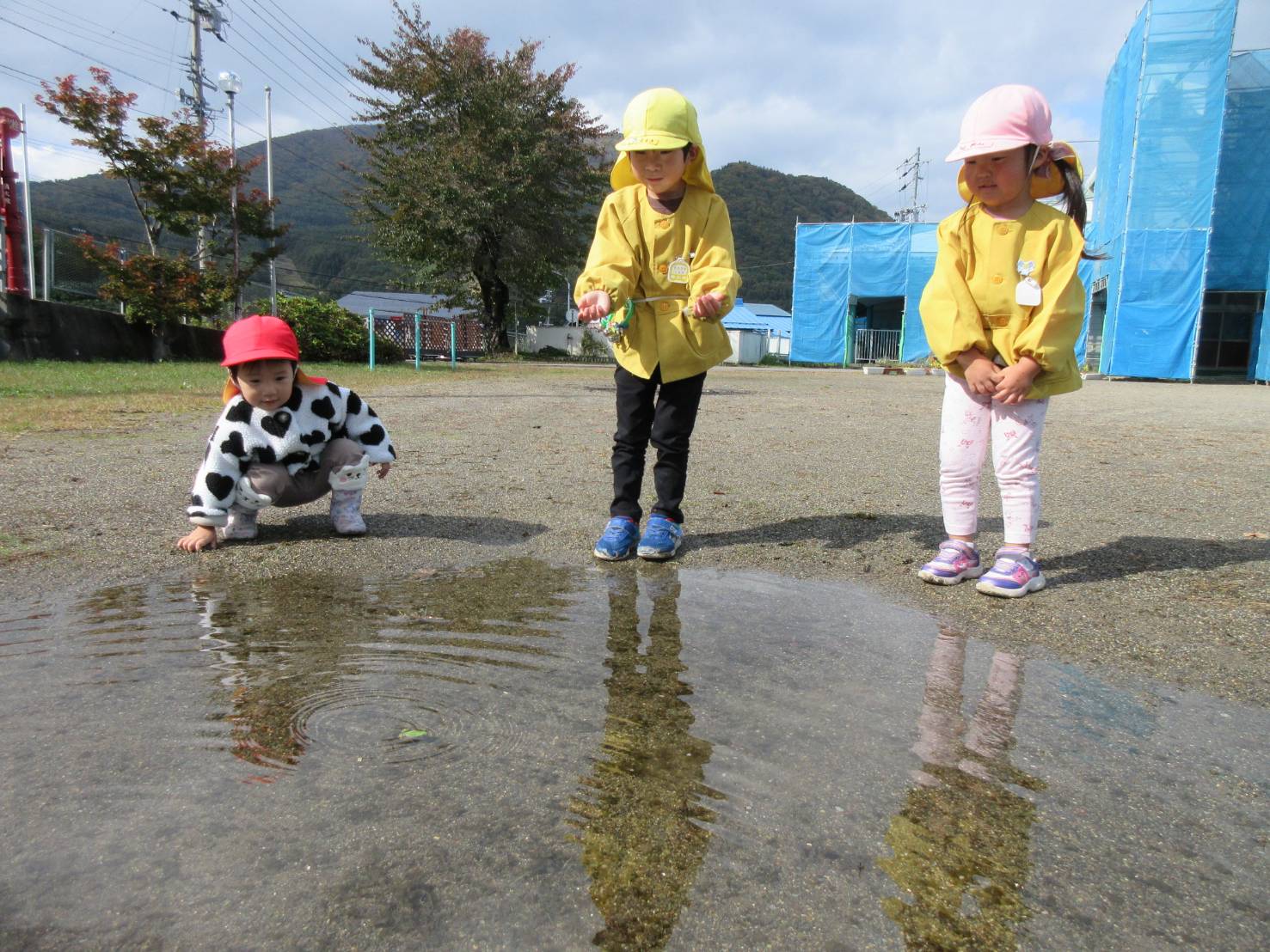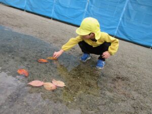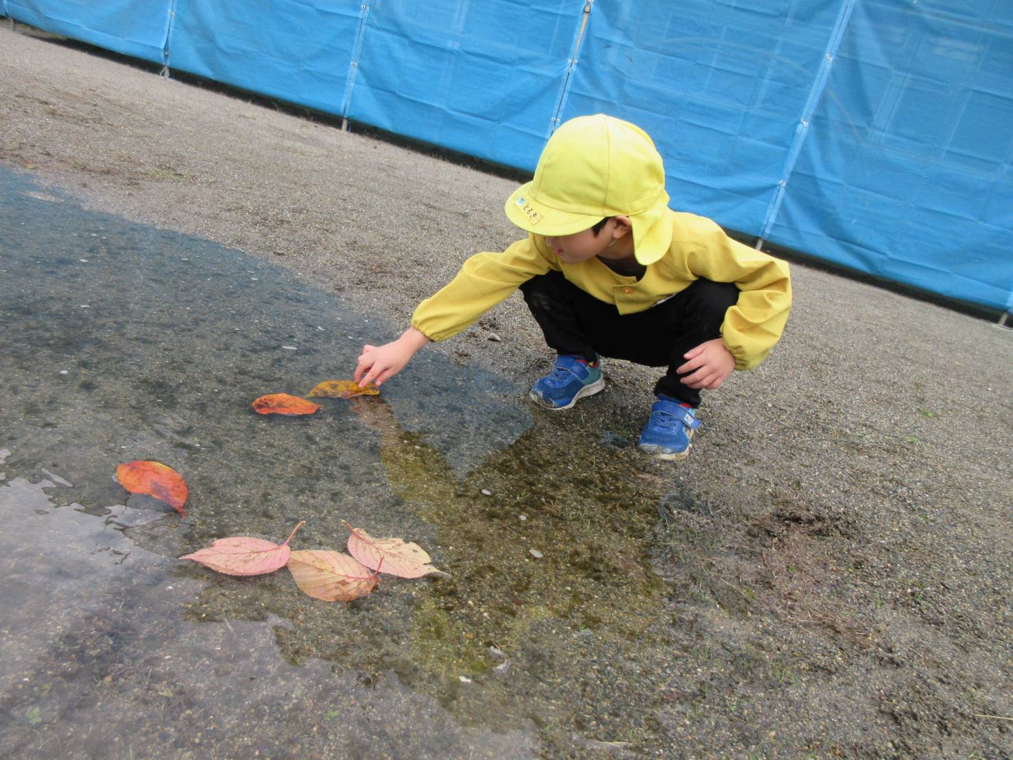 「はっぱをうかべてみようかな・・・ふねみたいだよ」