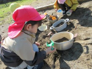 ちいさいおともだちは、いつもお兄さんお姉さんの姿を見て色々なことに挑戦します