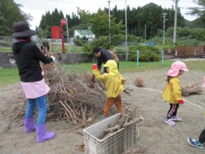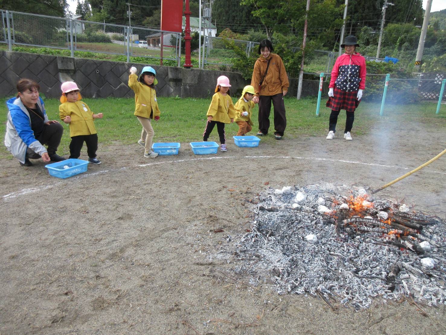地域の人やおじいちゃんおばあちゃんのおかげで美味しい焼きいもができ、秋を感じた楽しいひととき。