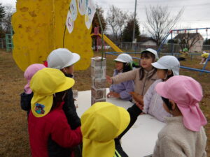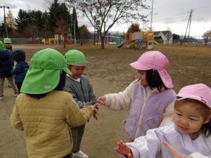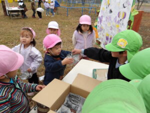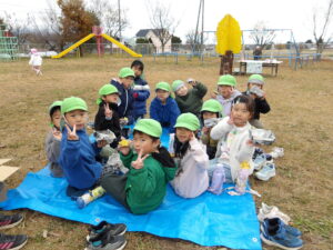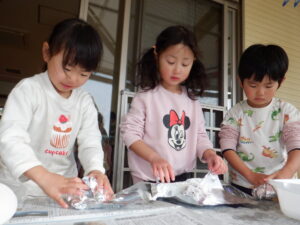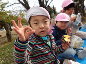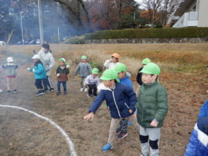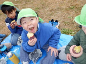 焼けるのを待つ間に、「やきいもぐーちーぱー」で遊んだり、「おいもの体操」で体を動かして美味しい焼き芋への期待を高めます。