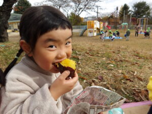 「いただきます!!」ほっくほくの美味しい焼き芋。口に入れたとたんに「おいしい!」「あまい!」の声があちこちから聞かれました。
