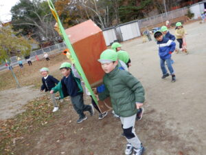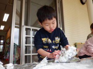 焼けるのを待つ間に、「やきいもぐーちーぱー」で遊んだり、「おいもの体操」で体を動かして美味しい焼き芋への期待を高めます。