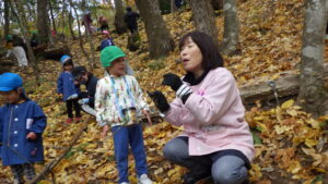 ・身近な環境である学友林での遊びは少々マンネリ化してきていたのでは?と感じていました。自然保育研修の機会を頂き、講師の先生や他園の参加者の視点や考えを聞きながら一緒に考え合うことで、自然環境の中でのリスク対応や遊びを実現するための環境作りなどの学びを深めることが出来ました。