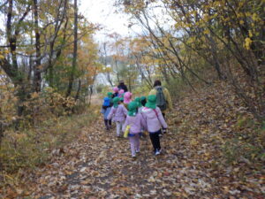 ・出発前から「○○したい」と楽しみにしていた子ども達でした。学友林の中では、友だちや保育士と一緒にやりたいことや興味惹かれたことにじっくり取り組むことが出来、またそこで感じた面白さや喜びを周りにいる人と共有することで、更に「もっと!」という思いが深まったように思いました。
