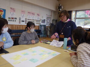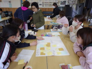 午後は、会場を公民館に移し、研修参加者と自園の職員が講師の指導の下、今日の学友林の遊びから皆で自然保育についての学びを深めました。