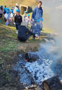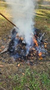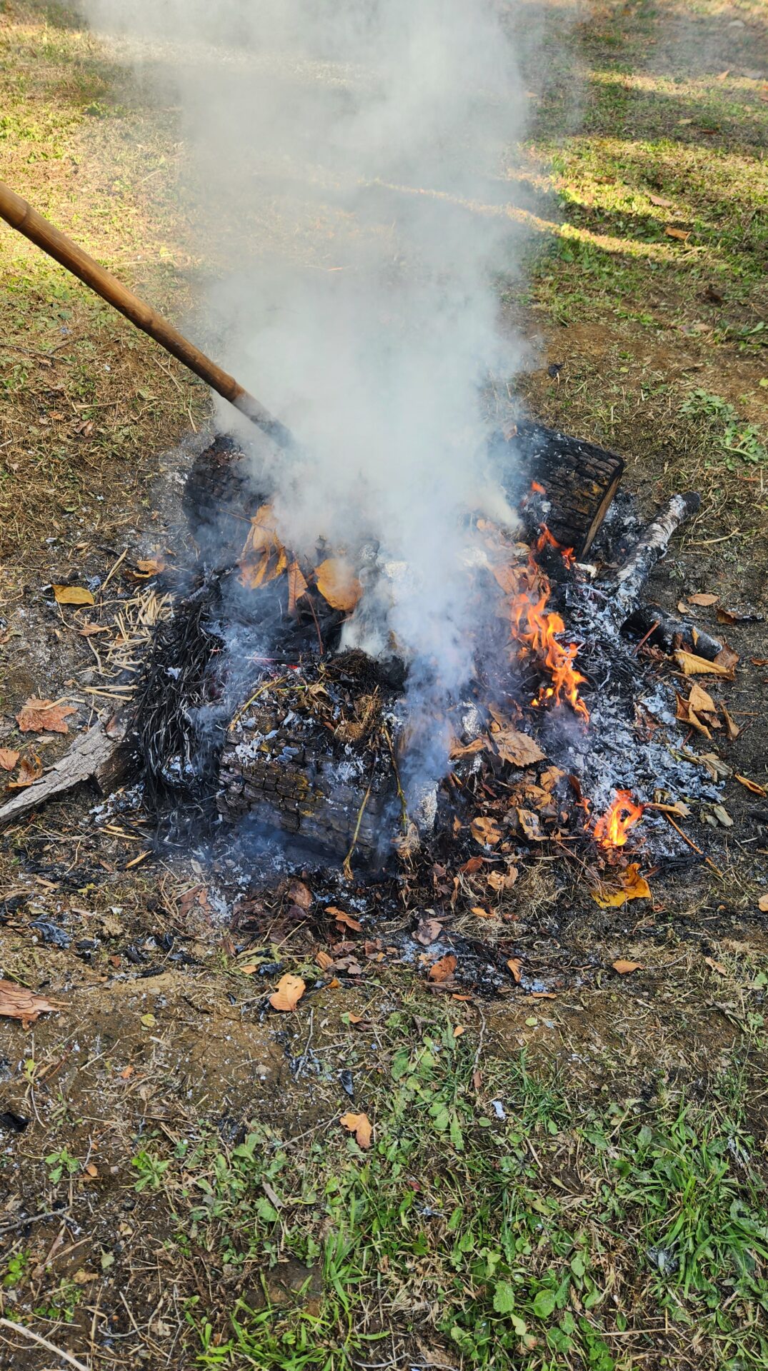 途中、火が消えないように…とみんなで落ち葉を集めてきてくれ、こんなに大きな火になりました!
