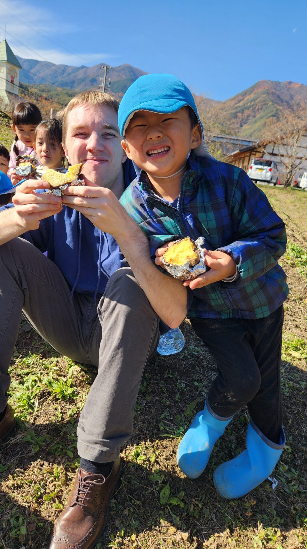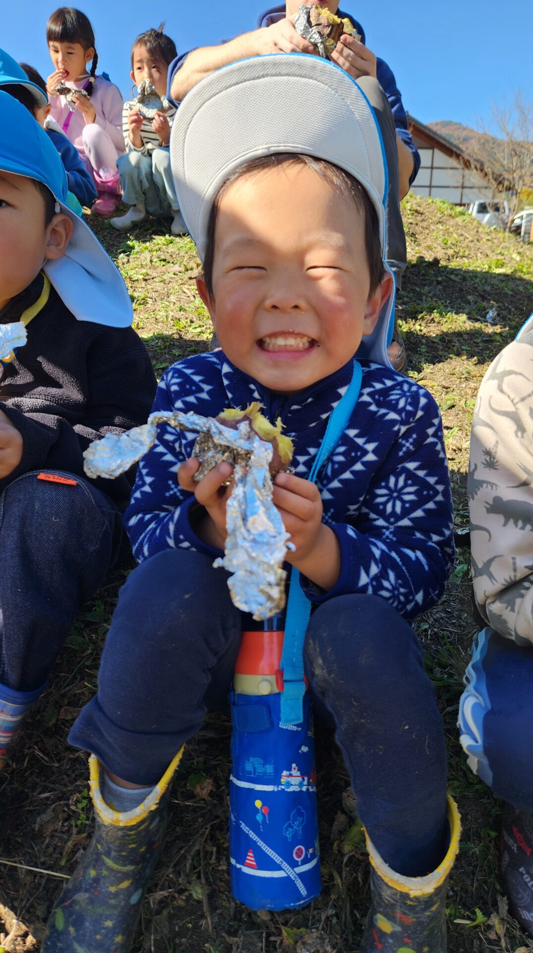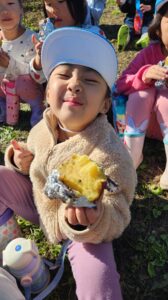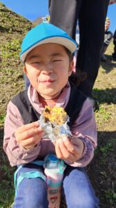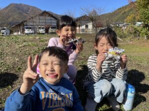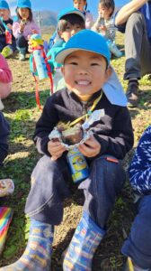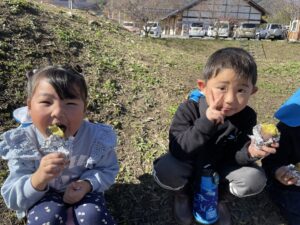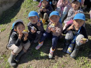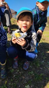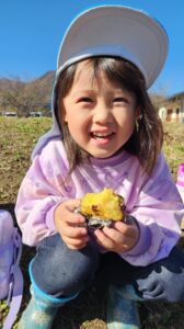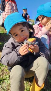 やきいも会では、収穫の喜びを感じたり、地域の方々や周りのお友だちと協力して作る楽しさ、一緒に食べる楽しさを感じたりして、達成感や自信につながっていました。