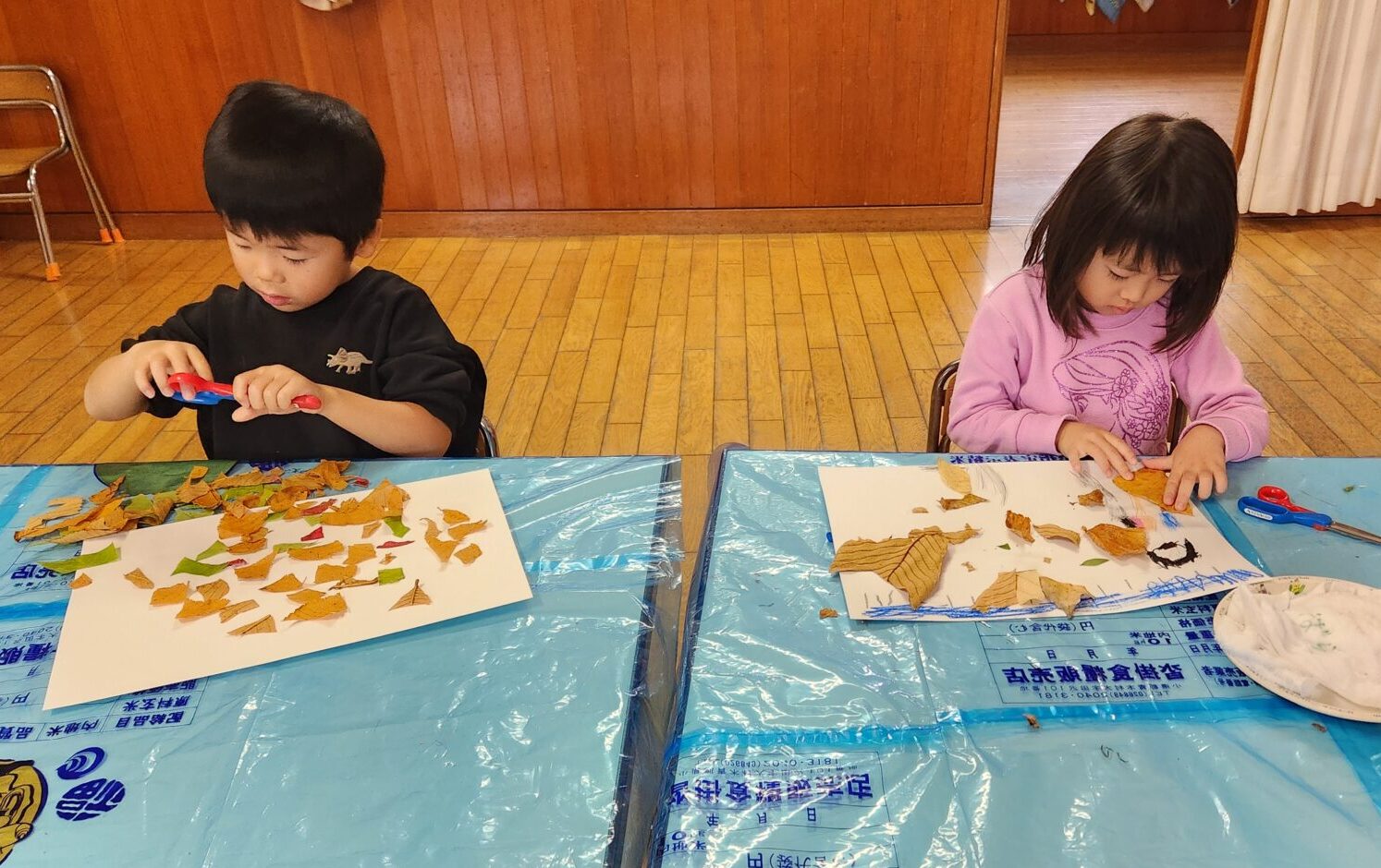 色々な場所で集めた落ち葉・木の実・松ぼっくりを使って製作も楽しみました♡